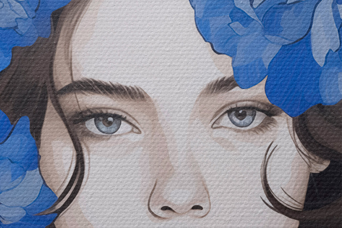 Bild Porträt eines Mädchens mit blauen Blumen Nr r45756