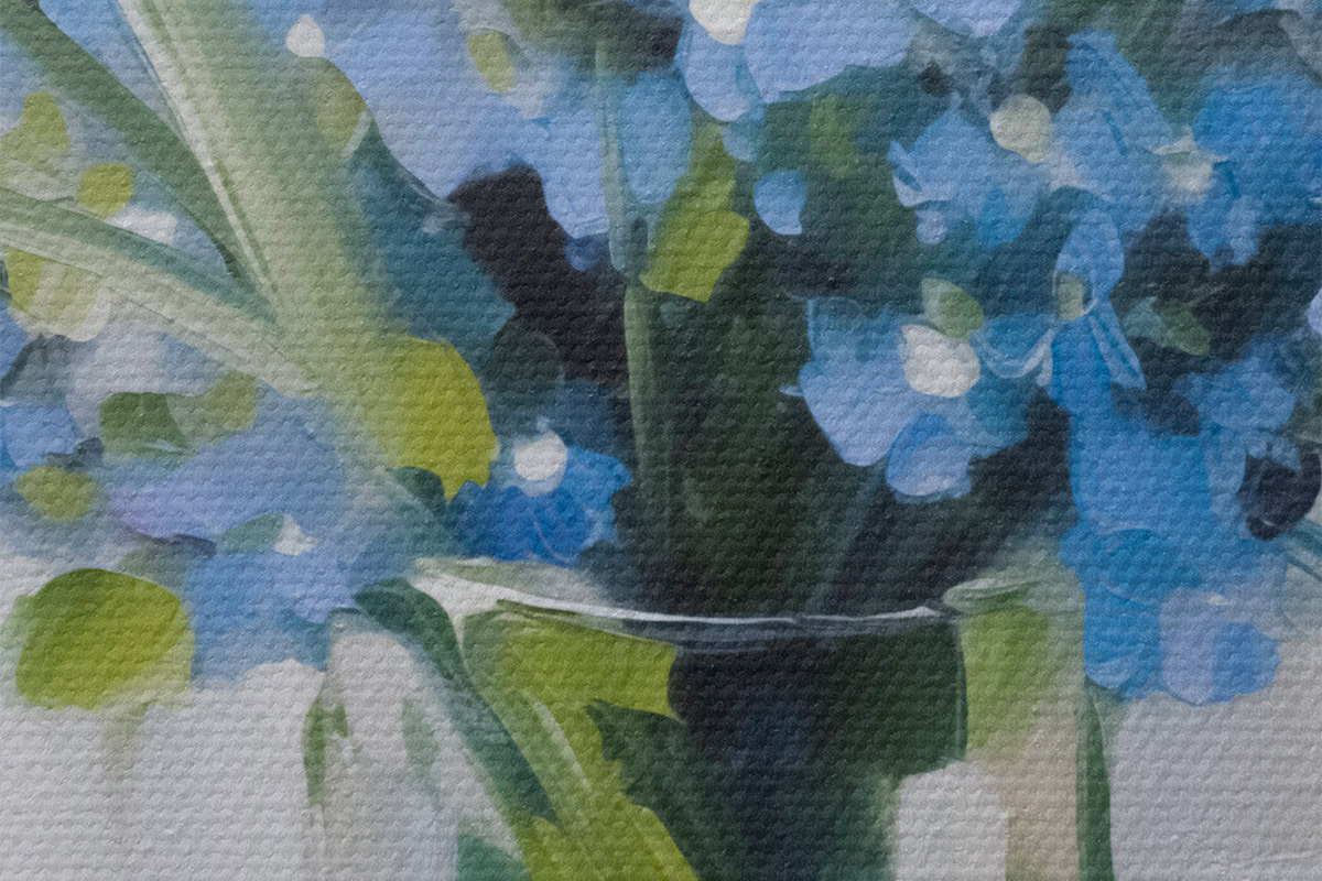 Das feine Fadengeflecht auf dieser Leinwand ähnelt der Oberfläche von professionellen Künstlerleinwänden.