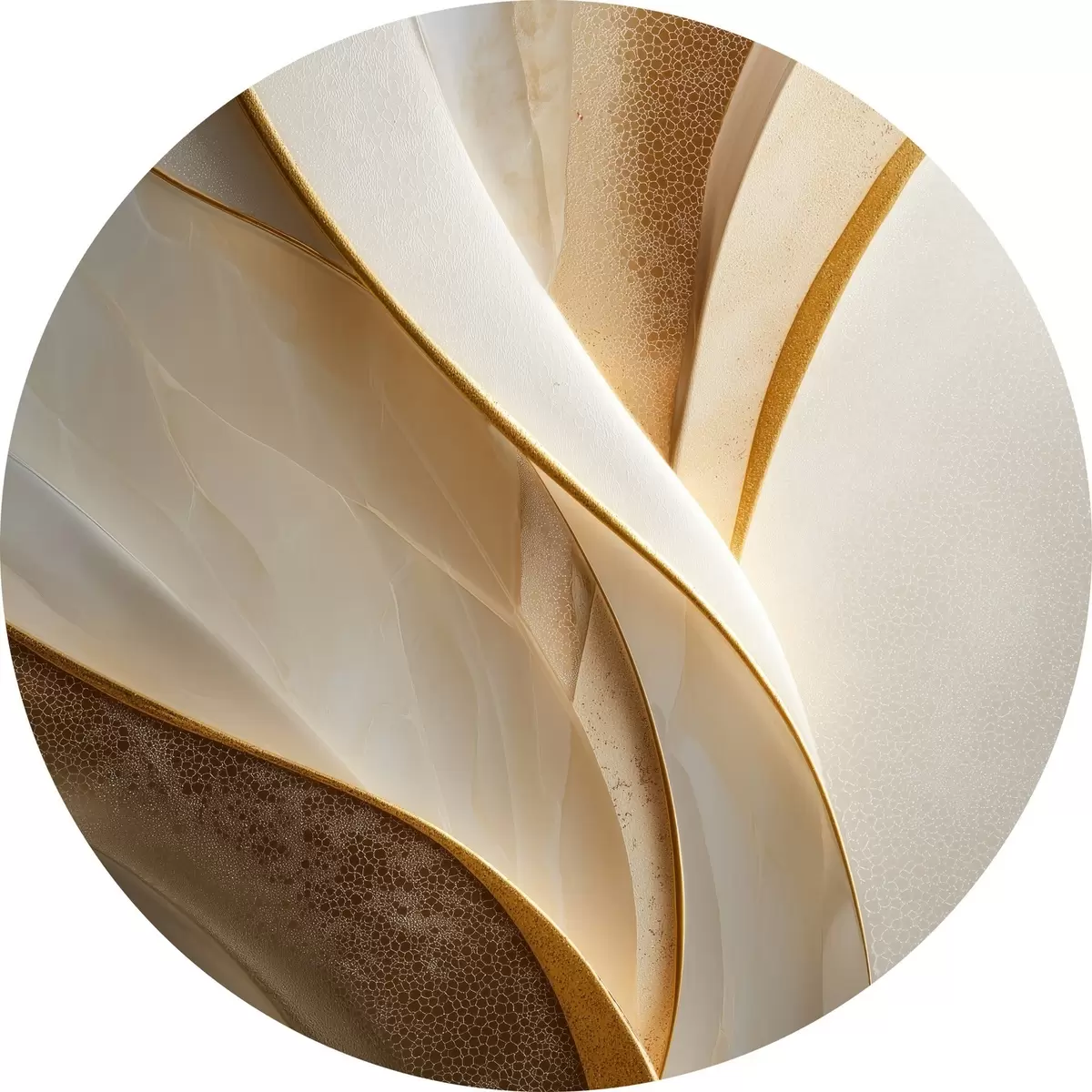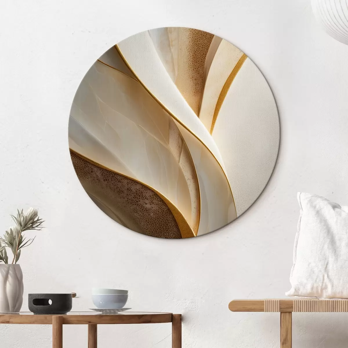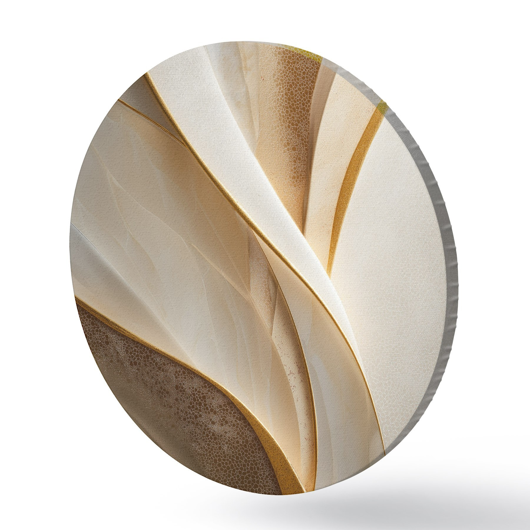 Runde Gemälde Abstrakte Kurven mit gelb-orangefarbenen und beigen Akzenten r45807