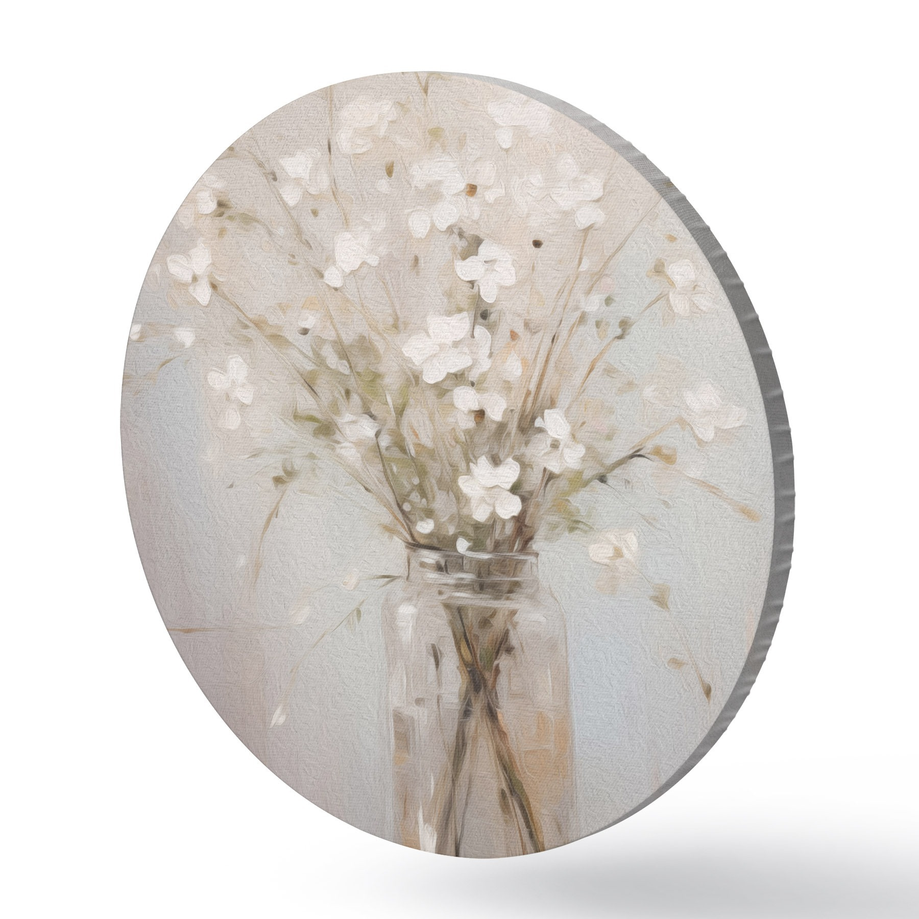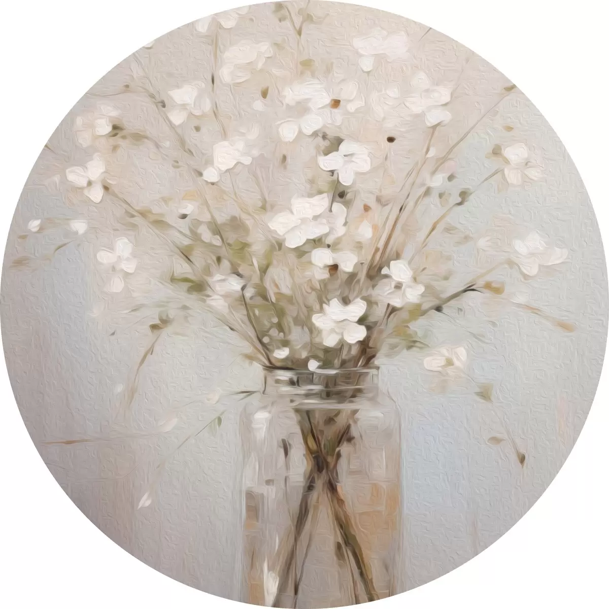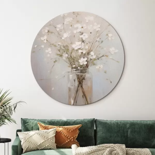 Runde Gemälde Ein Strauß weißer Blumen in einer transparenten Glasvase r45814