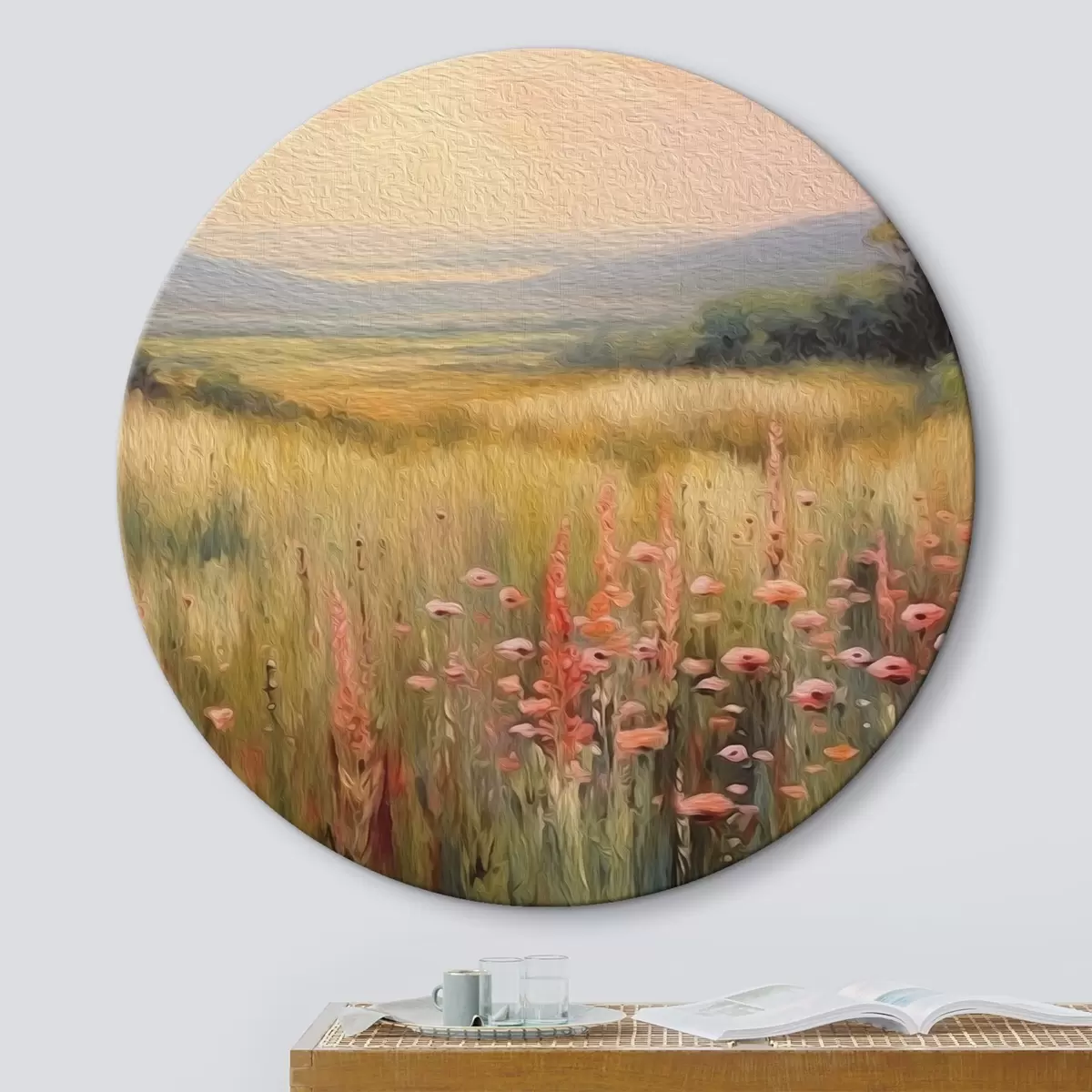 Runde Gemälde Feldlandschaft mit Blumen bei Sonnenuntergang r45818