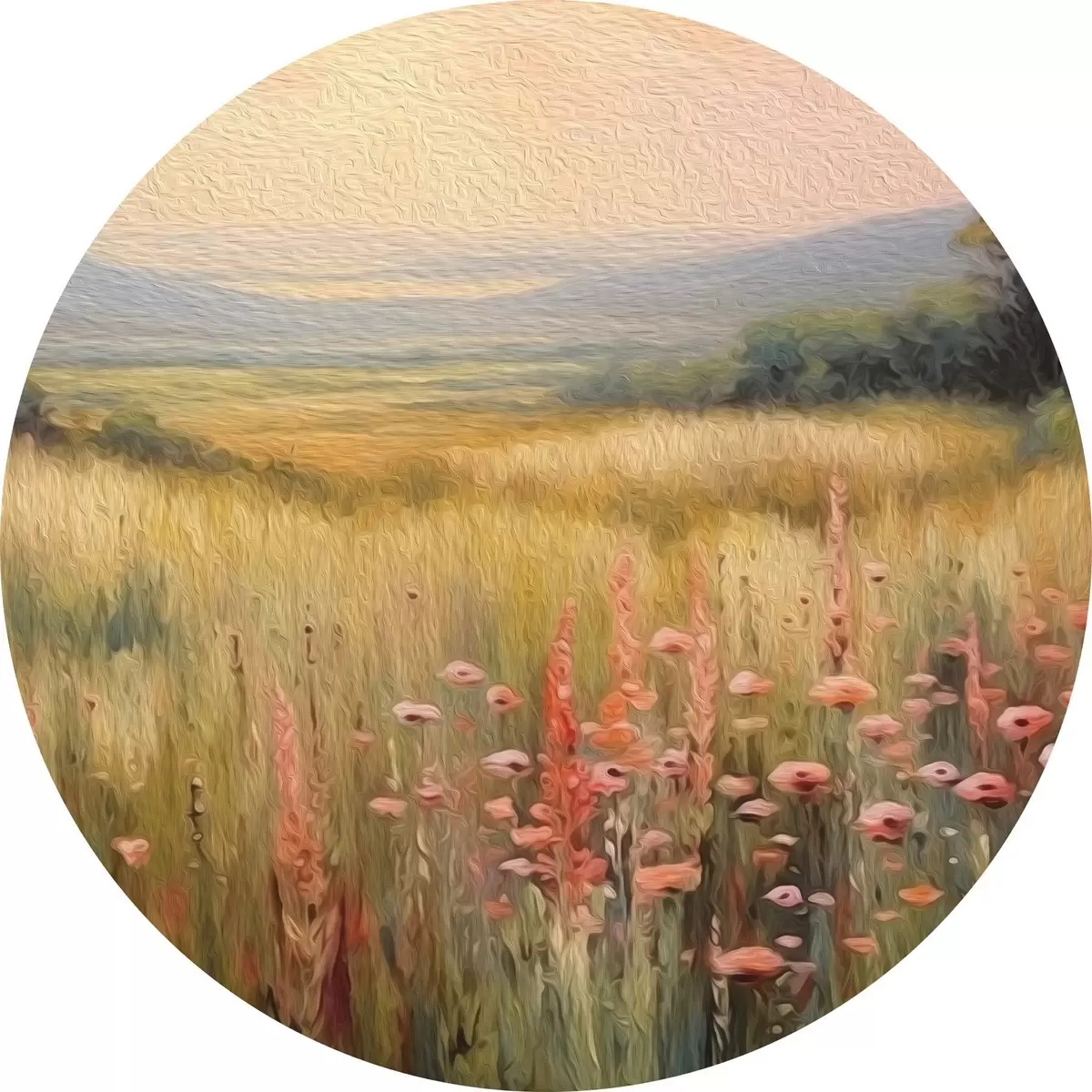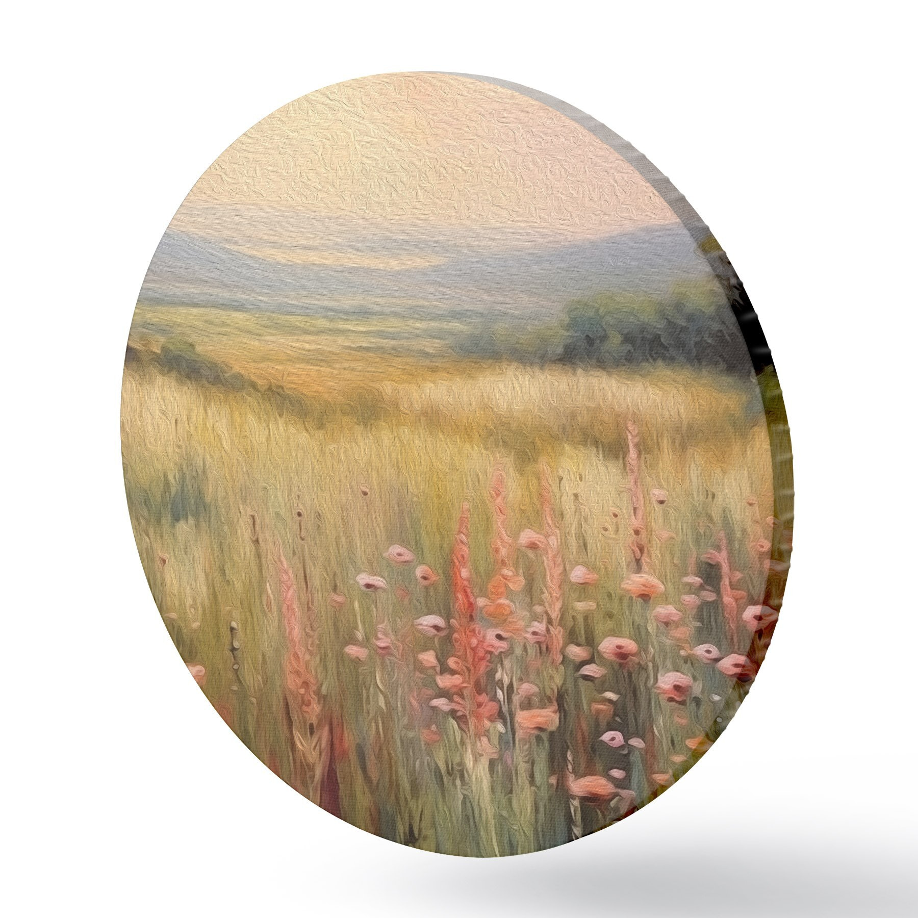Runde Gemälde Feldlandschaft mit Blumen bei Sonnenuntergang r45818