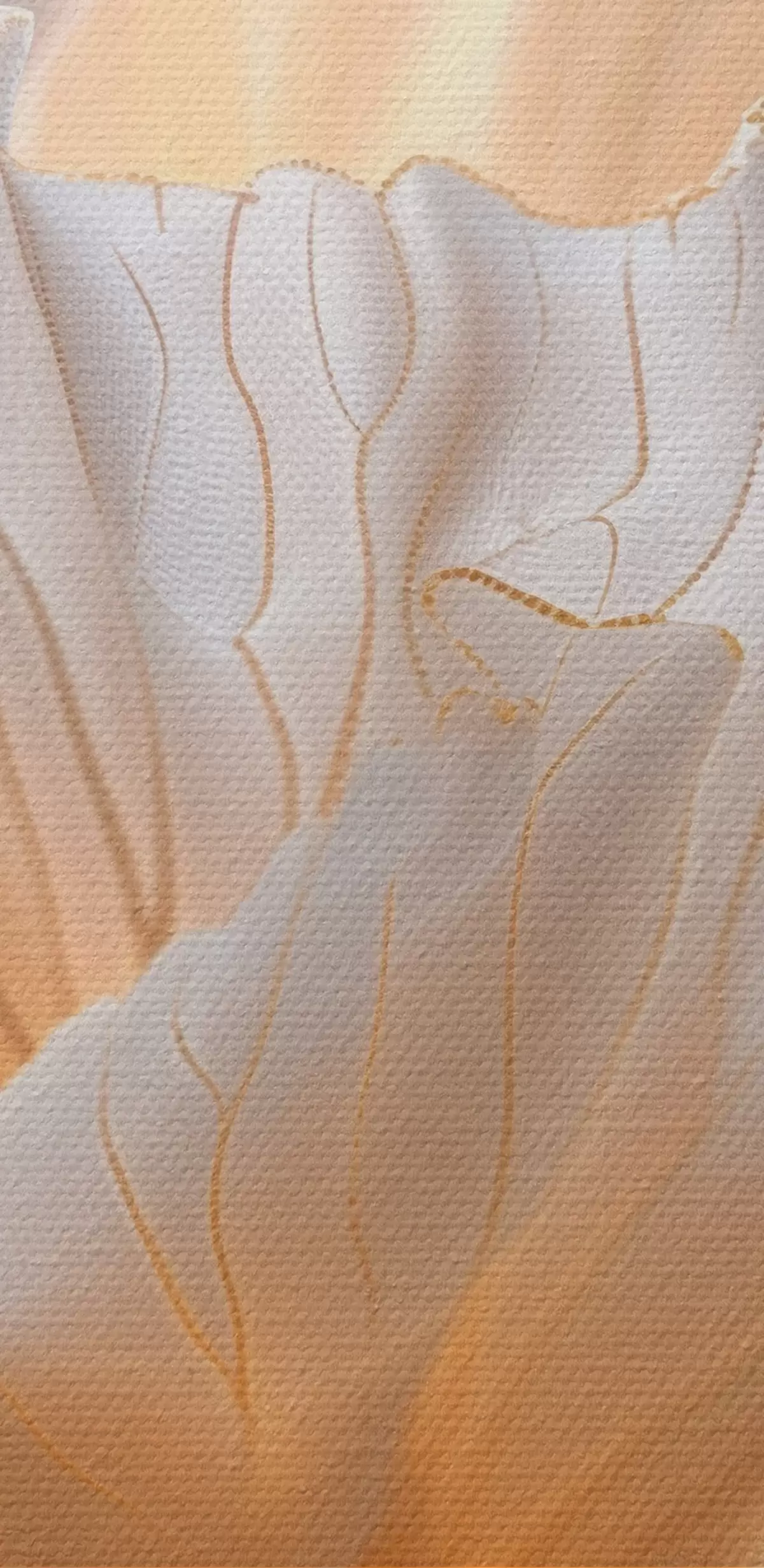 Runde Gemälde Zarte Blütenblätter in warmen Farbtönen mit gelb-orangefarbenen Rändern r45820