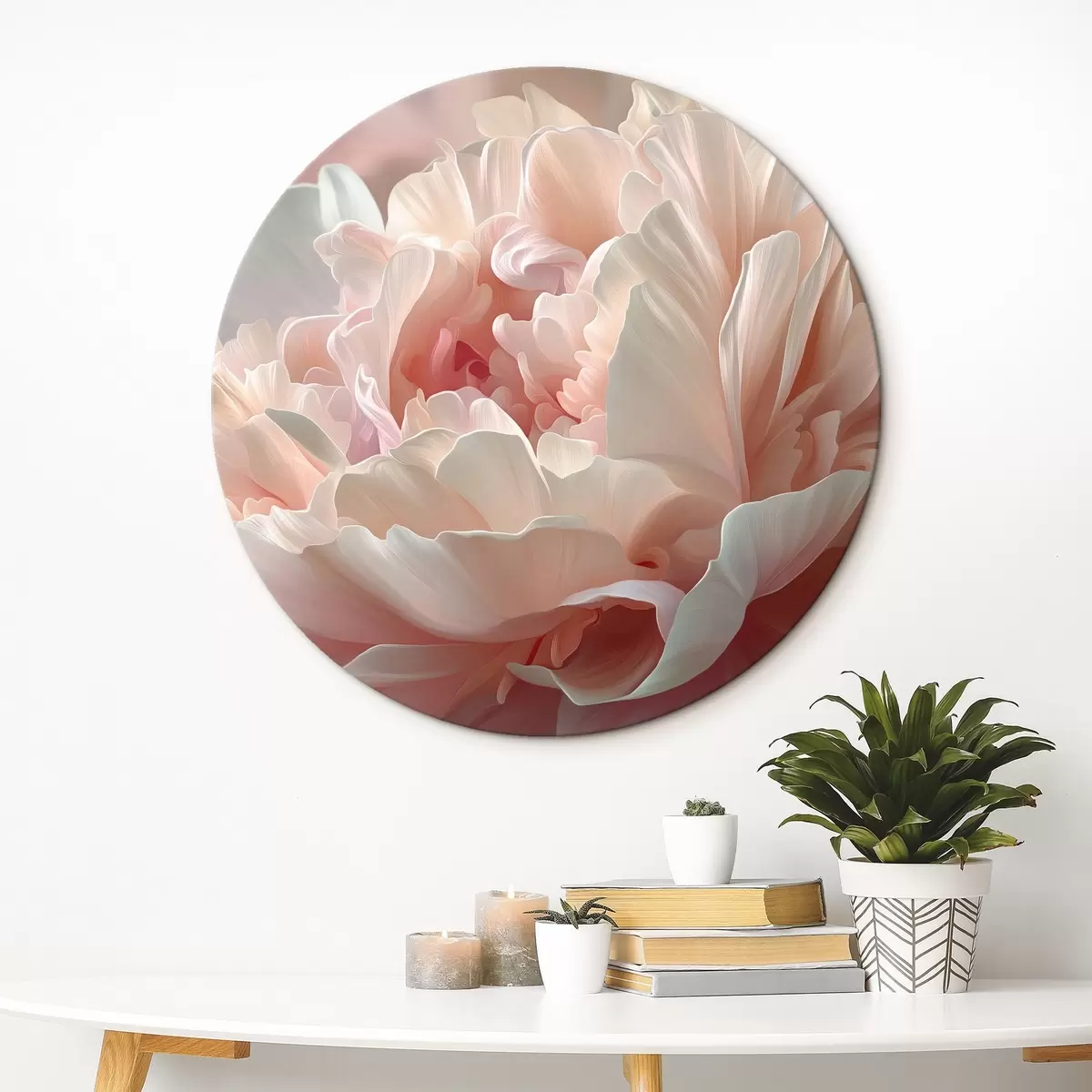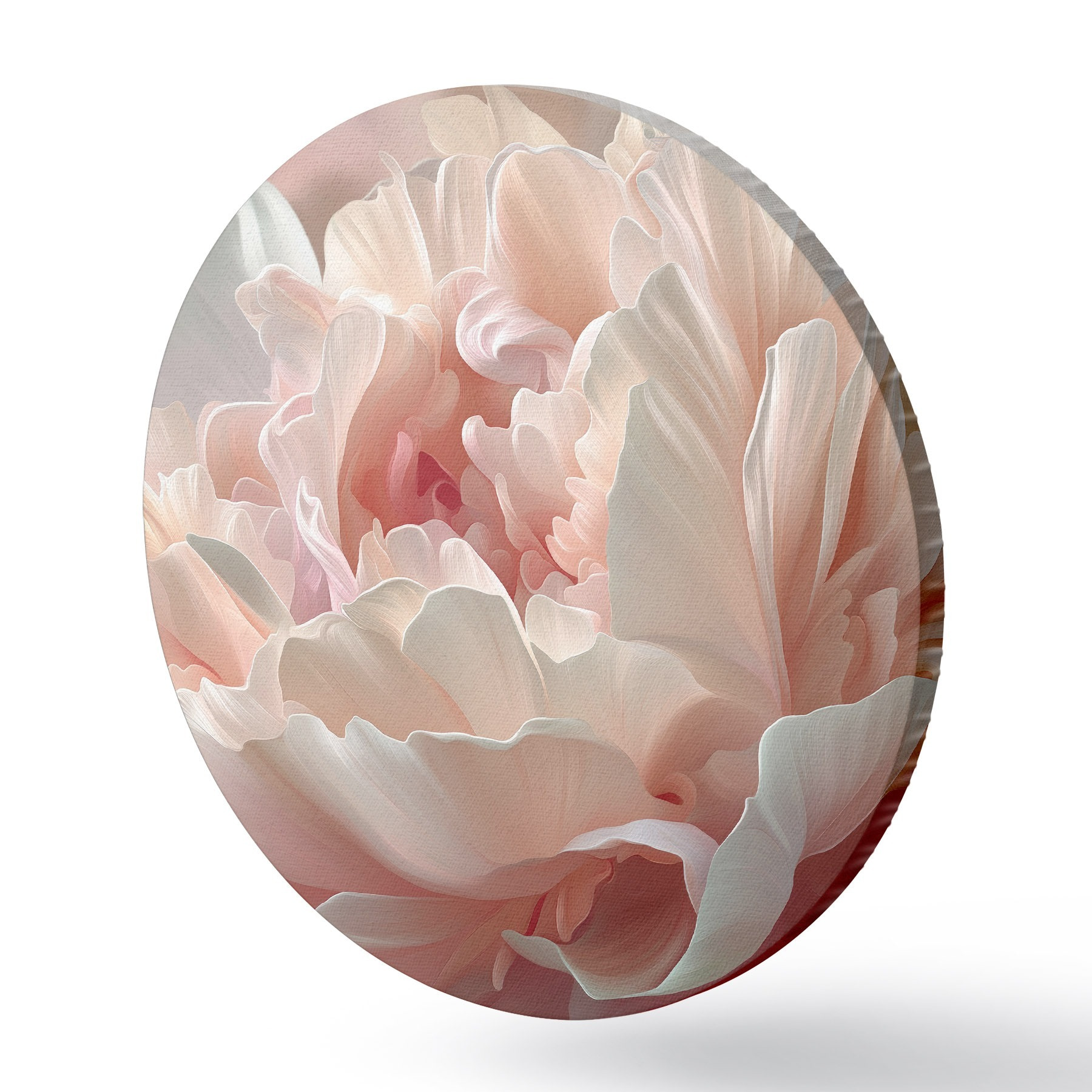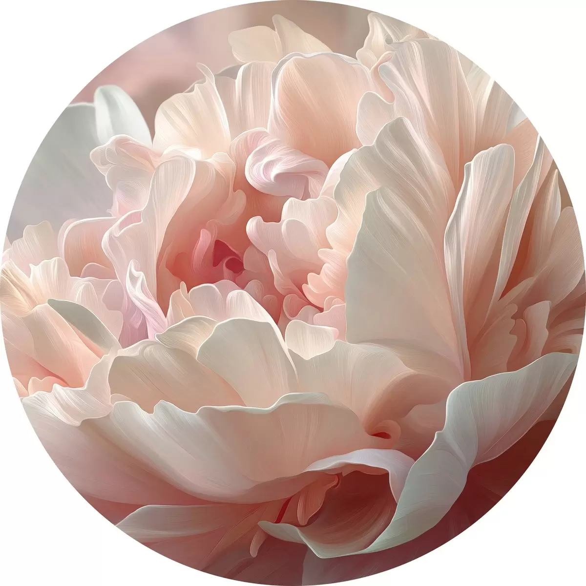 Runde Gemälde Blühende Pfingstrose in Rosa- und Beigetönen r45825