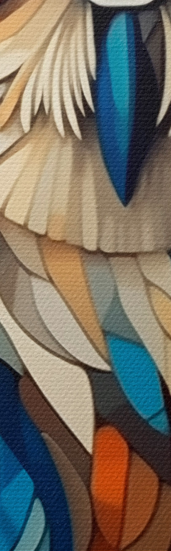 Um die Leinwand auf Keilrahmen zu spannen, ohne das Bild zu beschädigen, verwenden wir ein gespiegeltes Bild.