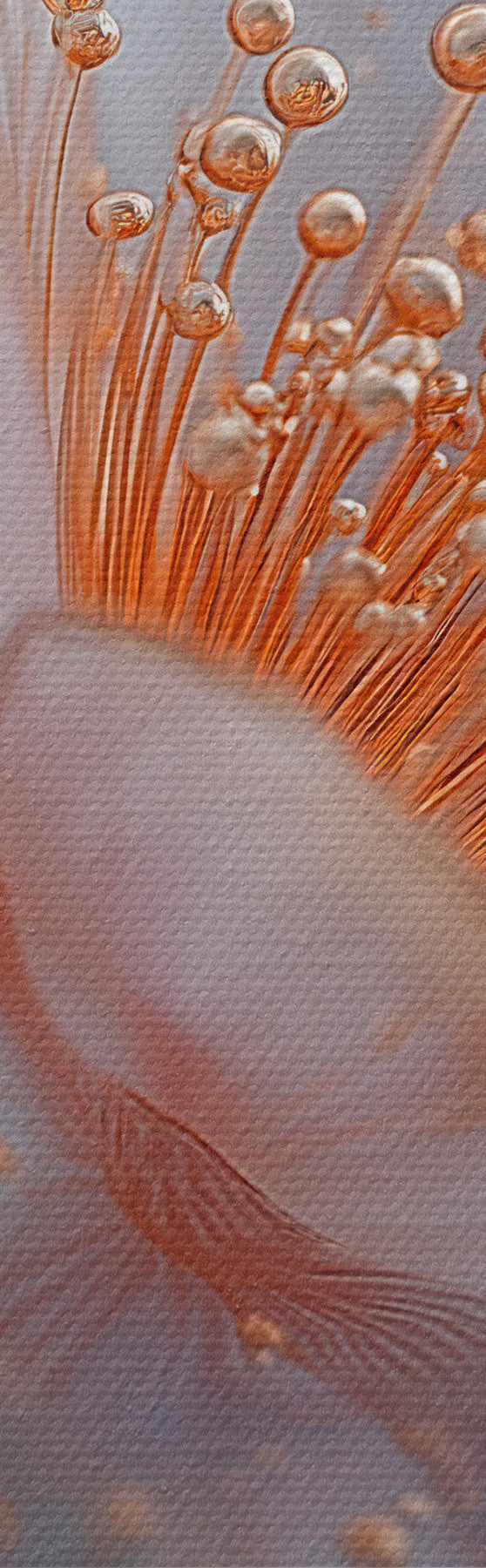 Bild Durchscheinende Blume mit kupferfarbenen Staubblättern auf blauem Hintergrund Nr r45880