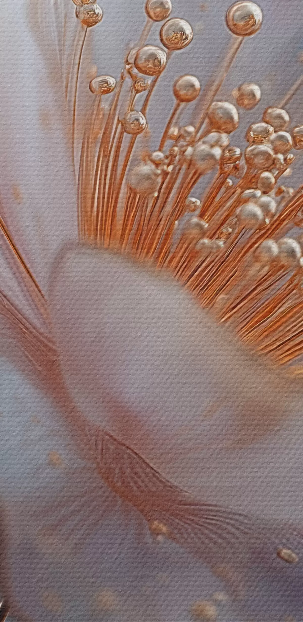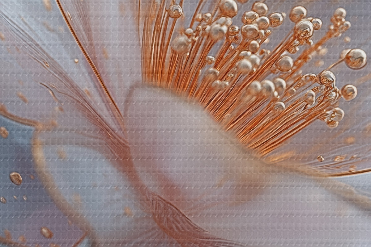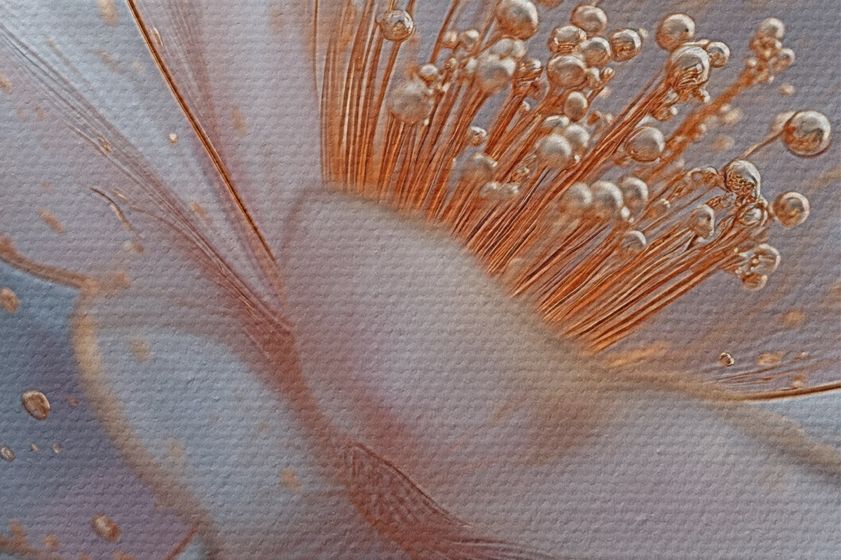 Bild Durchscheinende Blume mit kupferfarbenen Staubblättern auf blauem Hintergrund Nr r45880