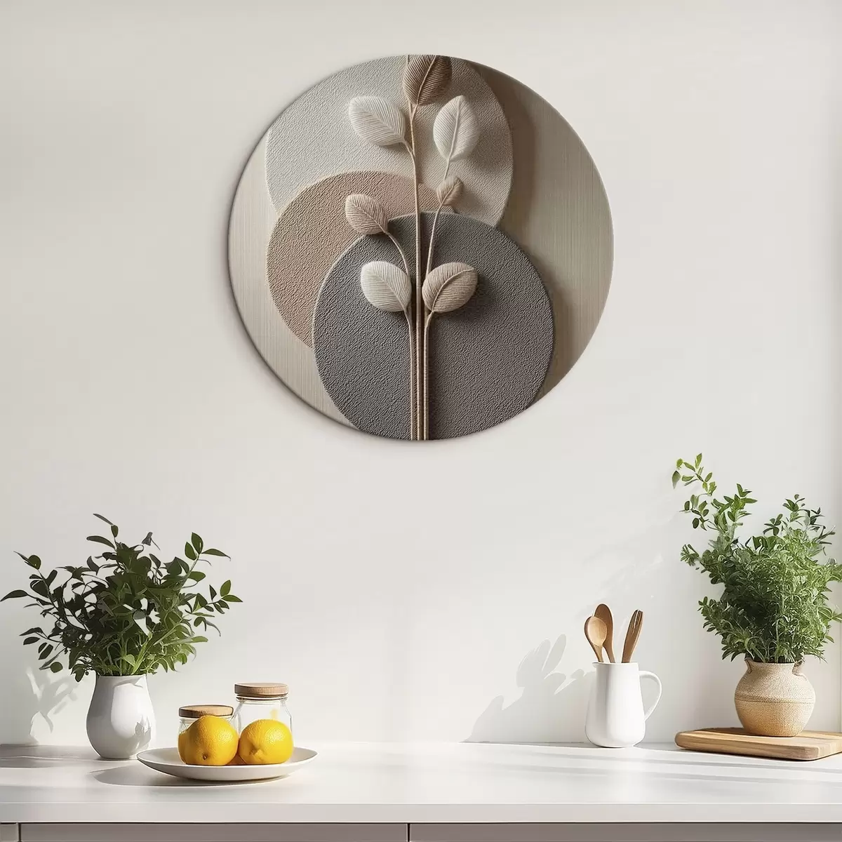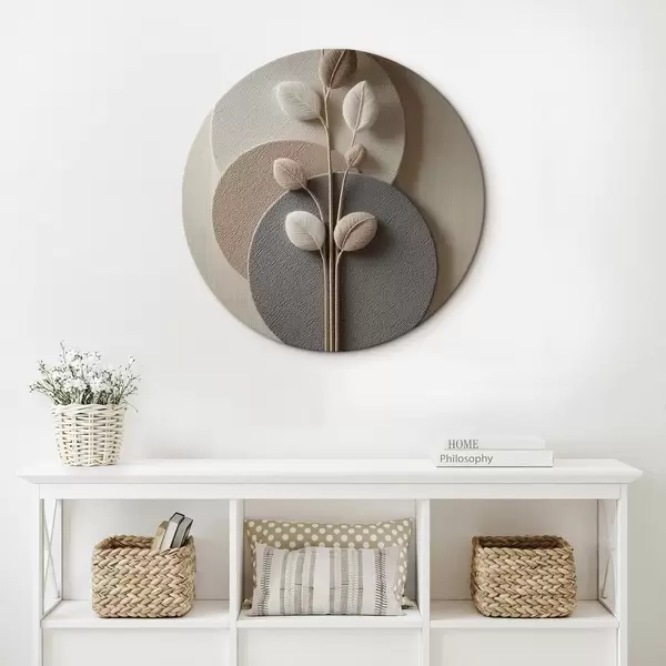 Bild Reliefkreise und ein Ast in warmen, neutralen Farbtönen Nr r45883