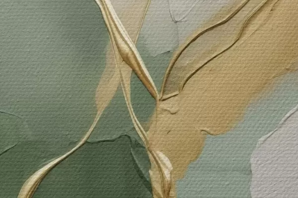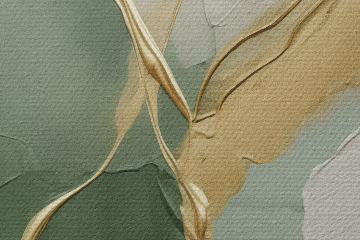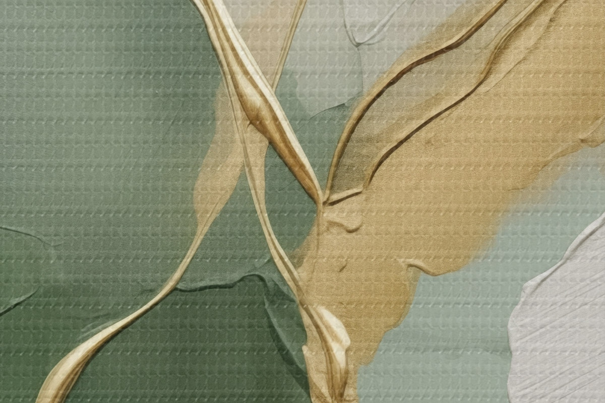 Bild Smaragdgrün-cremefarbene Abstraktion mit gelben Rinnsalen Nr r45887