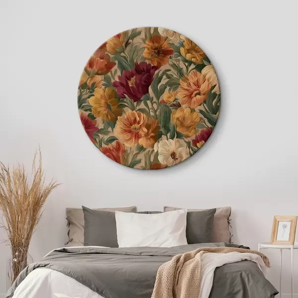 Runde Gemälde Vintage-Blumenmuster in warmen Farbtönen r45896