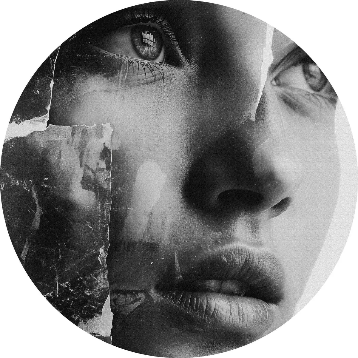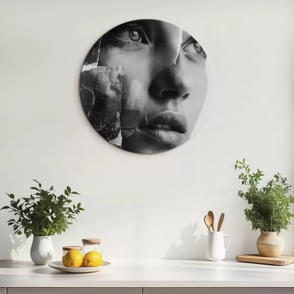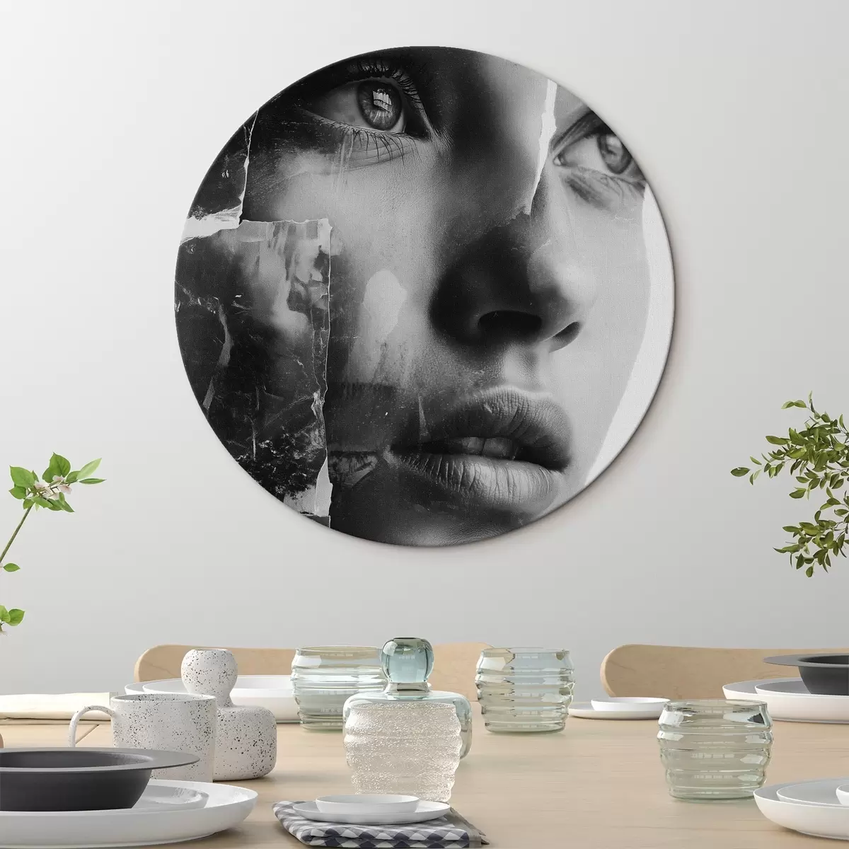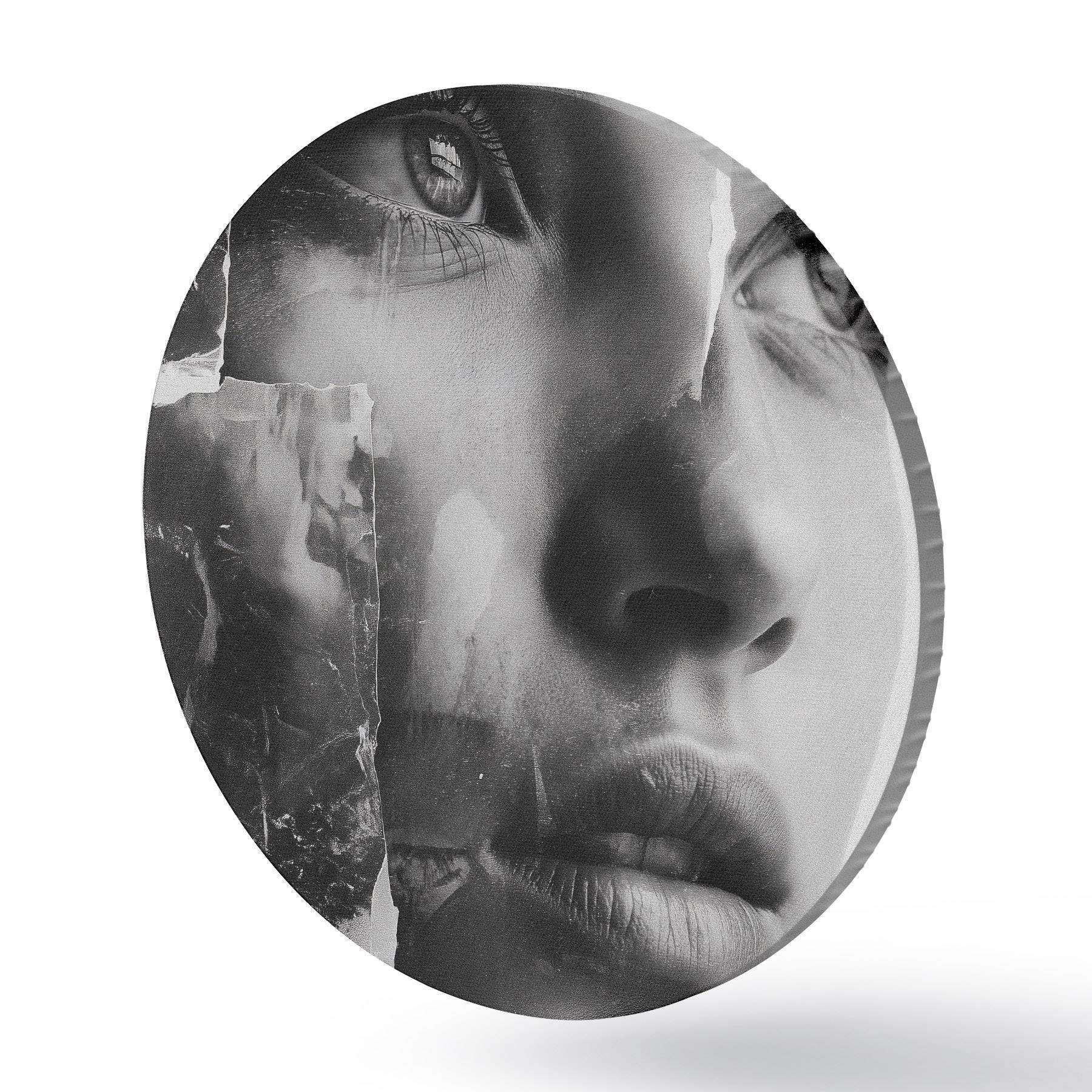 Runde Gemälde Schwarz-Weiß-Collage-Porträt mit zerrissenen strukturierten Schichten r45898