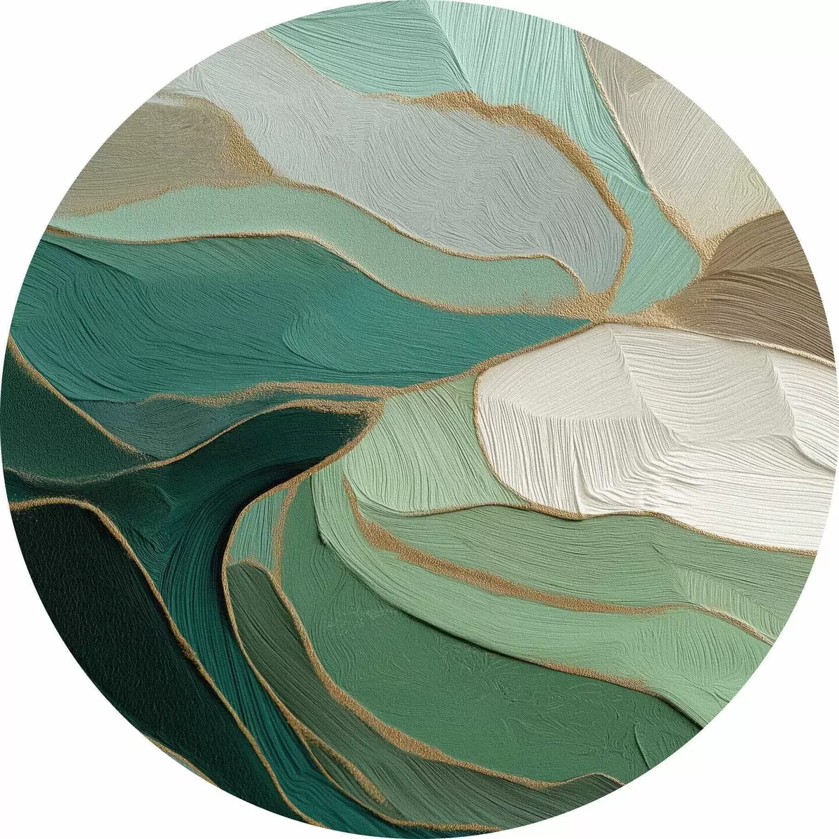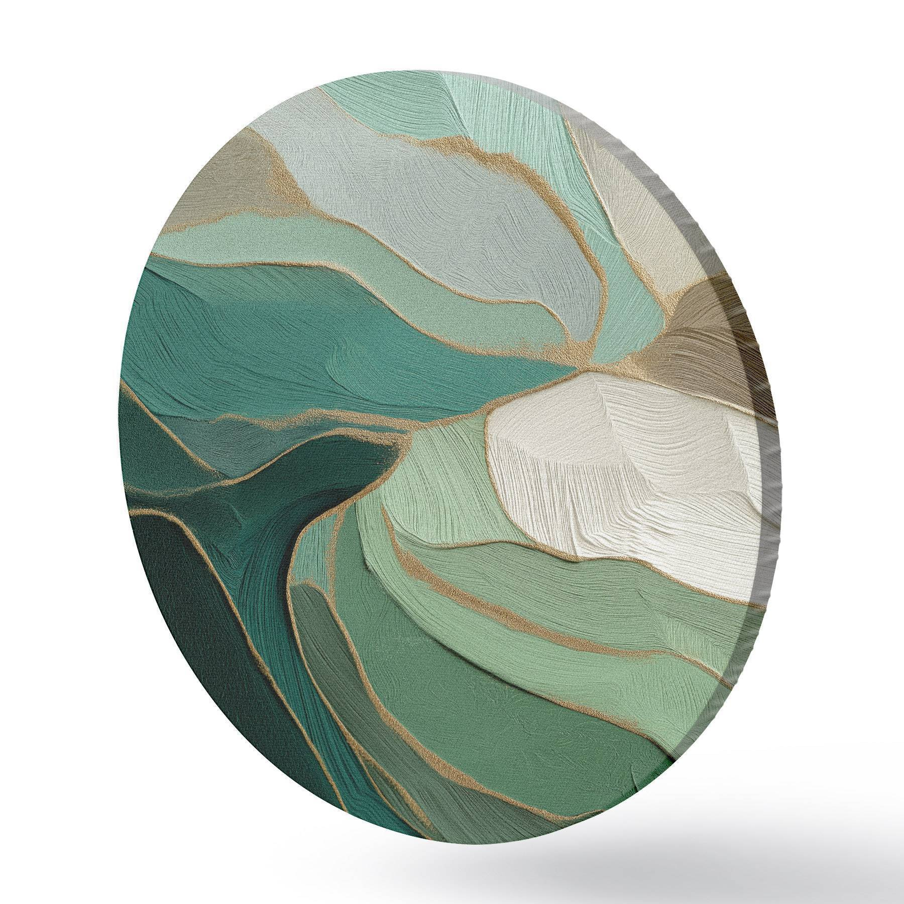Runde Gemälde Salbeigrüne Abstraktion mit gelbem Umriss r45901