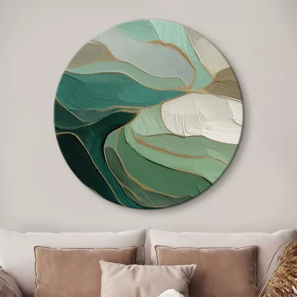 Runde Gemälde Salbeigrüne Abstraktion mit gelbem Umriss r45901