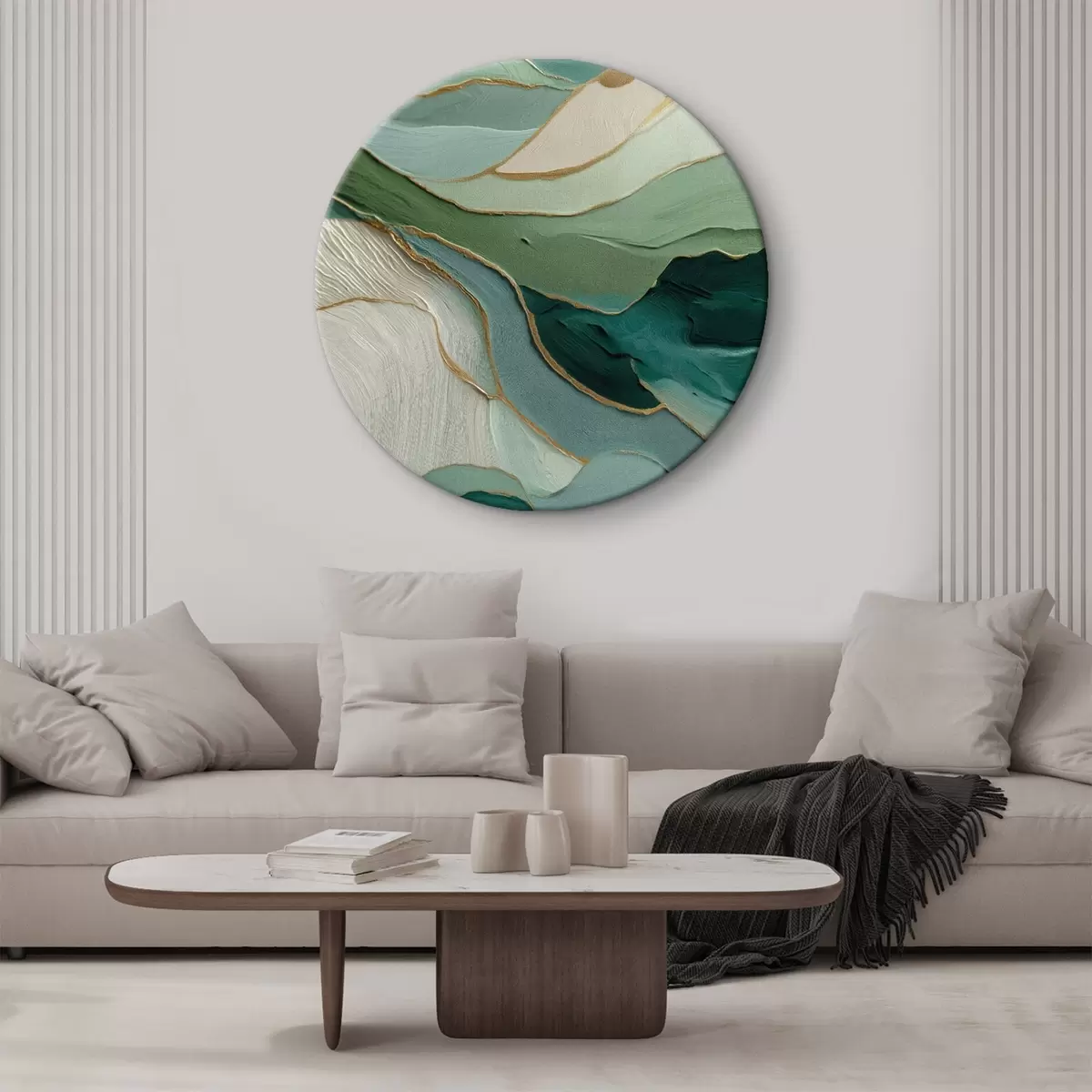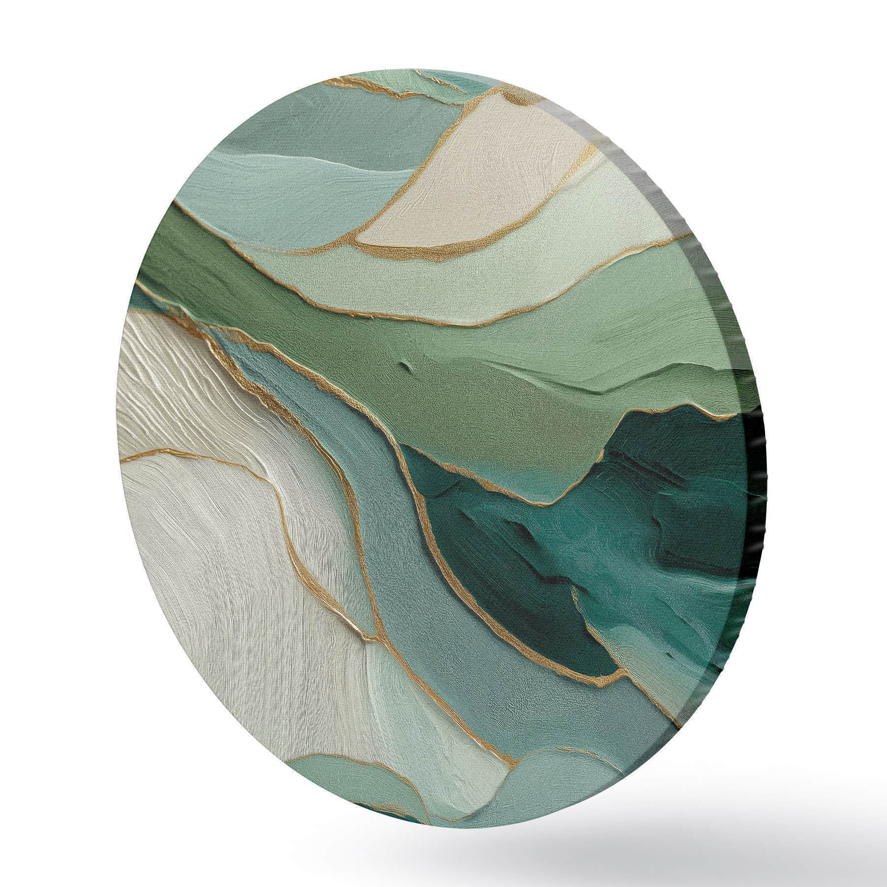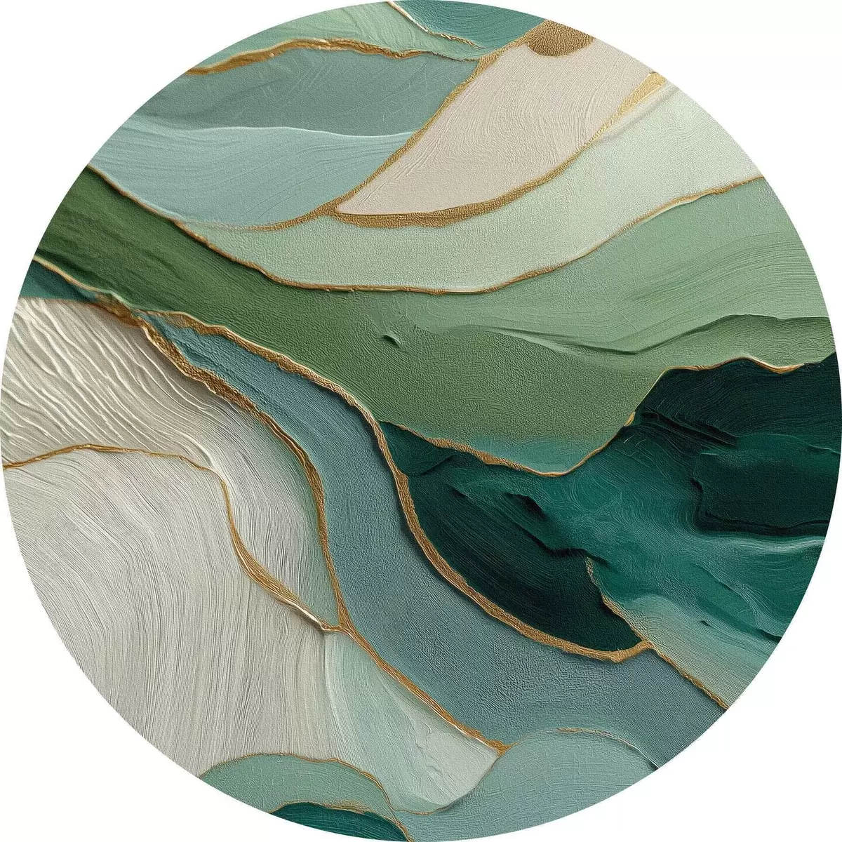 Runde Gemälde Mehrschichtige grüne Abstraktion mit gelben Linien und Tiefe r45902