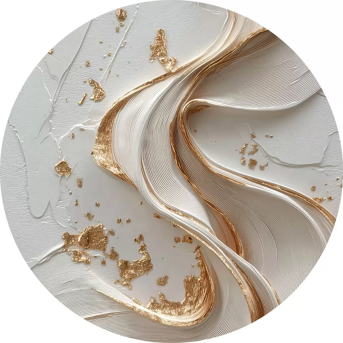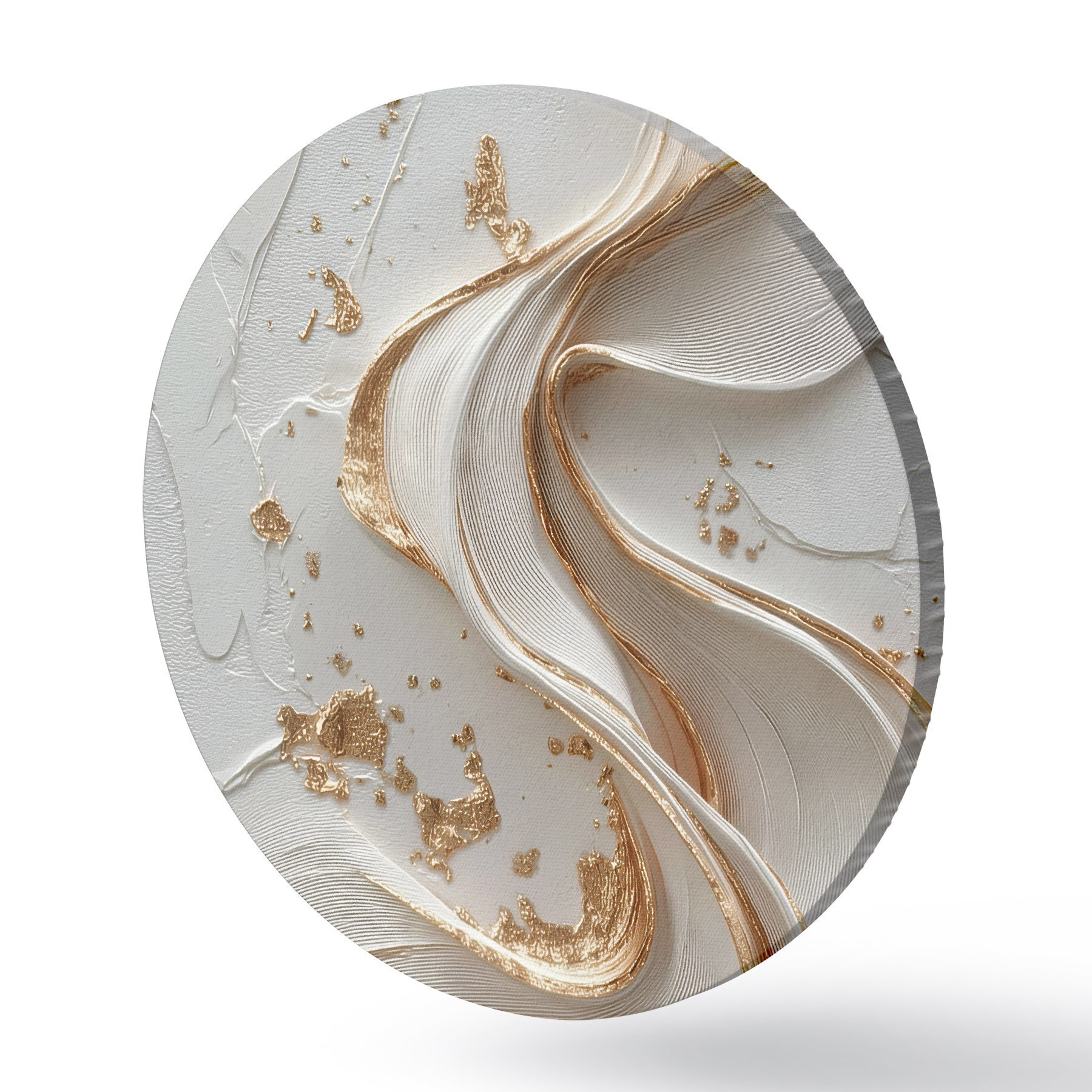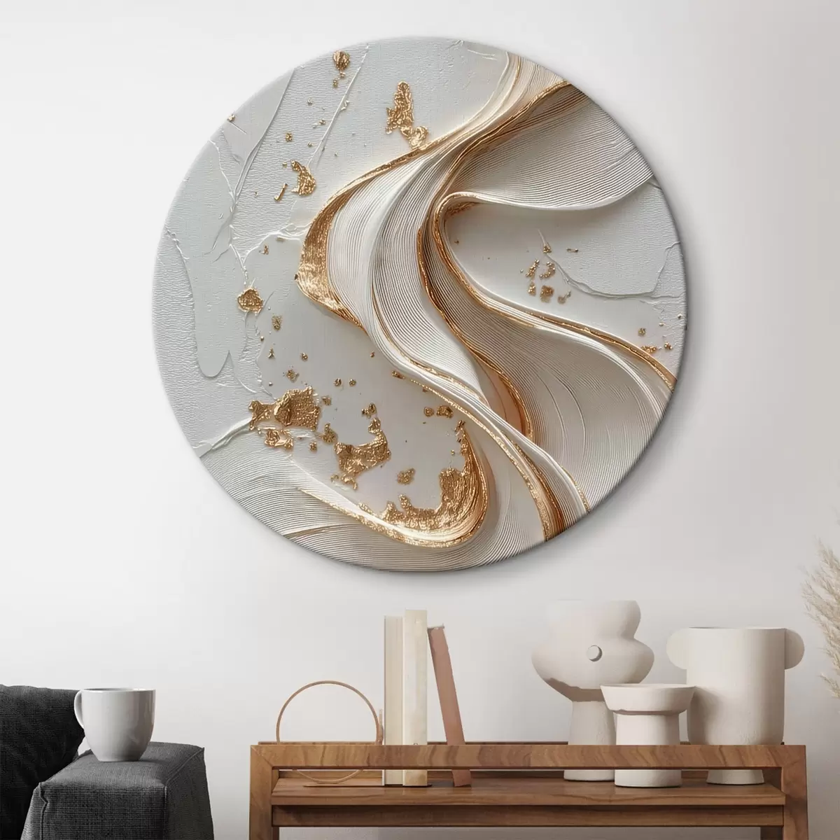 Runde Gemälde Weiß-gelbe strukturierte Striche mit metallischen Akzenten r45906