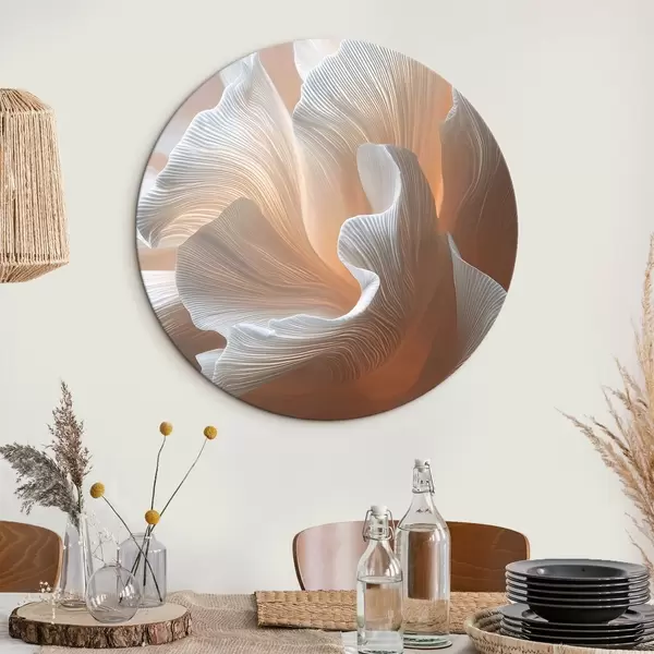 Runde Gemälde Luftige weiße Blütenblätter mit warmem Pfirsichglanz r45909