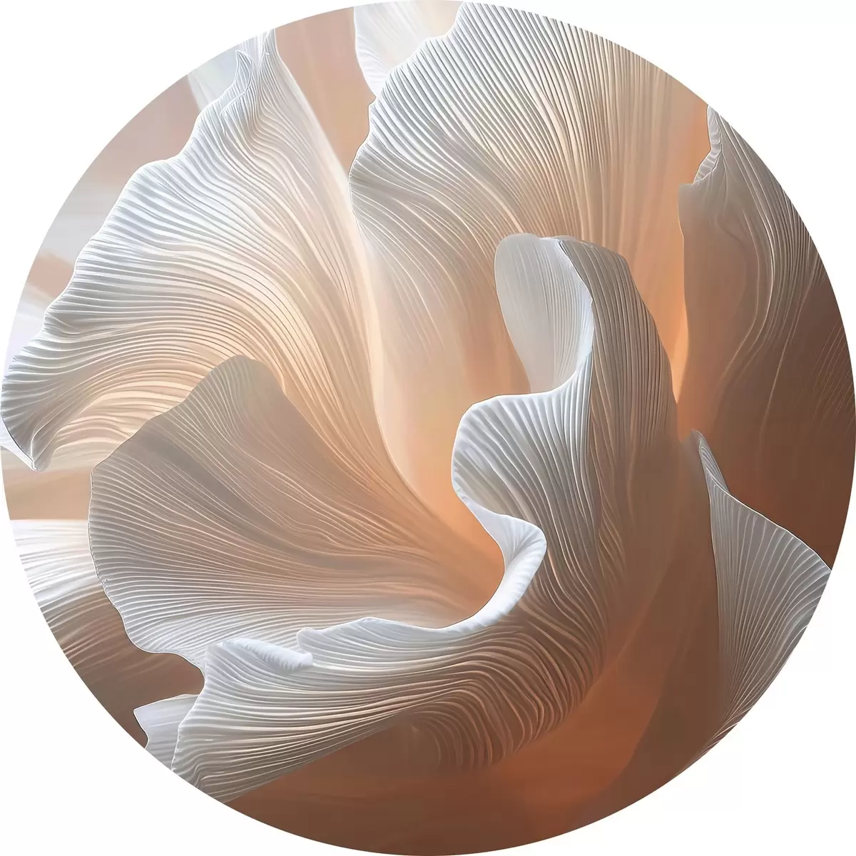 Runde Gemälde Luftige weiße Blütenblätter mit warmem Pfirsichglanz r45909