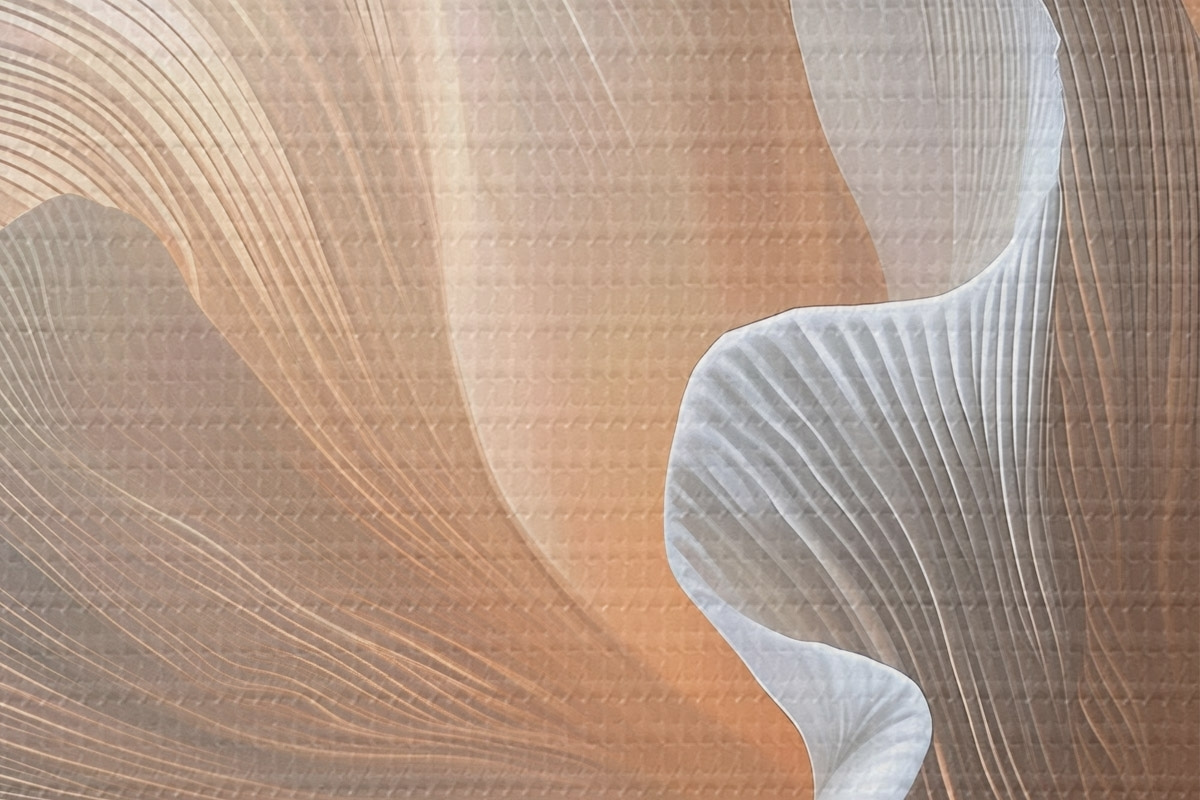 Bild Luftige weiße Blütenblätter mit warmem Pfirsichglanz Nr r45909