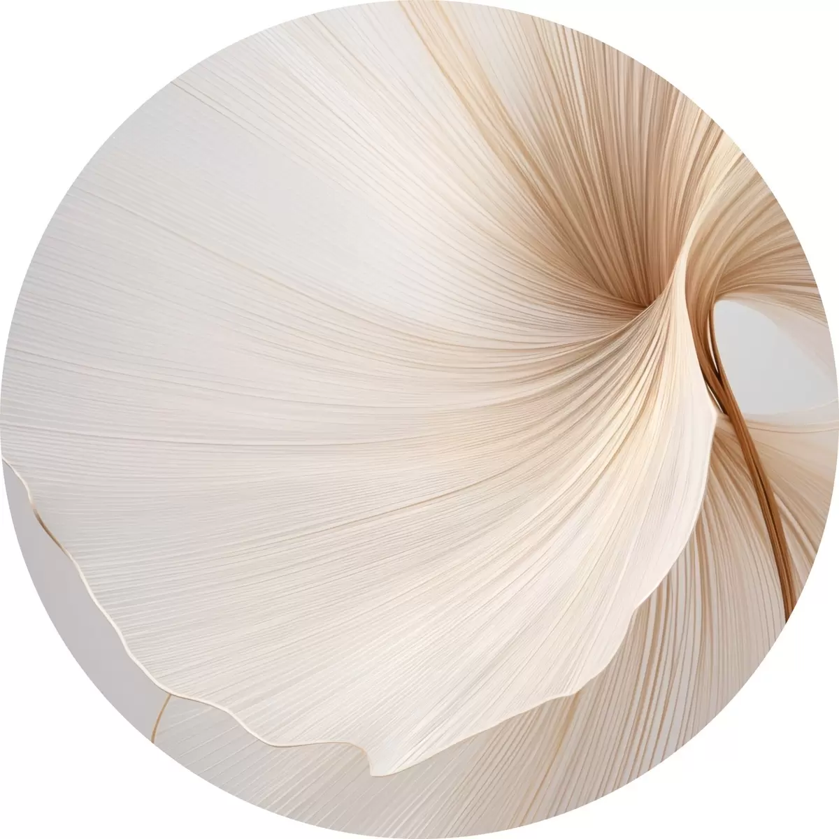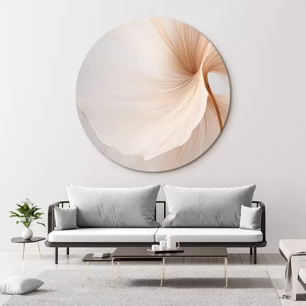 Runde Gemälde Abstrakte Blumen mit dünnen, zarten Blütenblättern in Weiß- und Beigetönen r45922