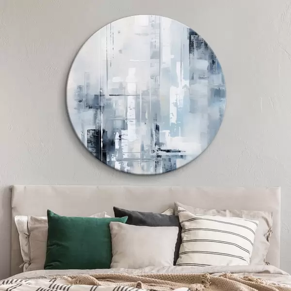 Runde Gemälde Abstrakte Malerei-Imitation mit blauen, grauen und weißen Farben, vertikalen Linien und geometrischen Formen r45927