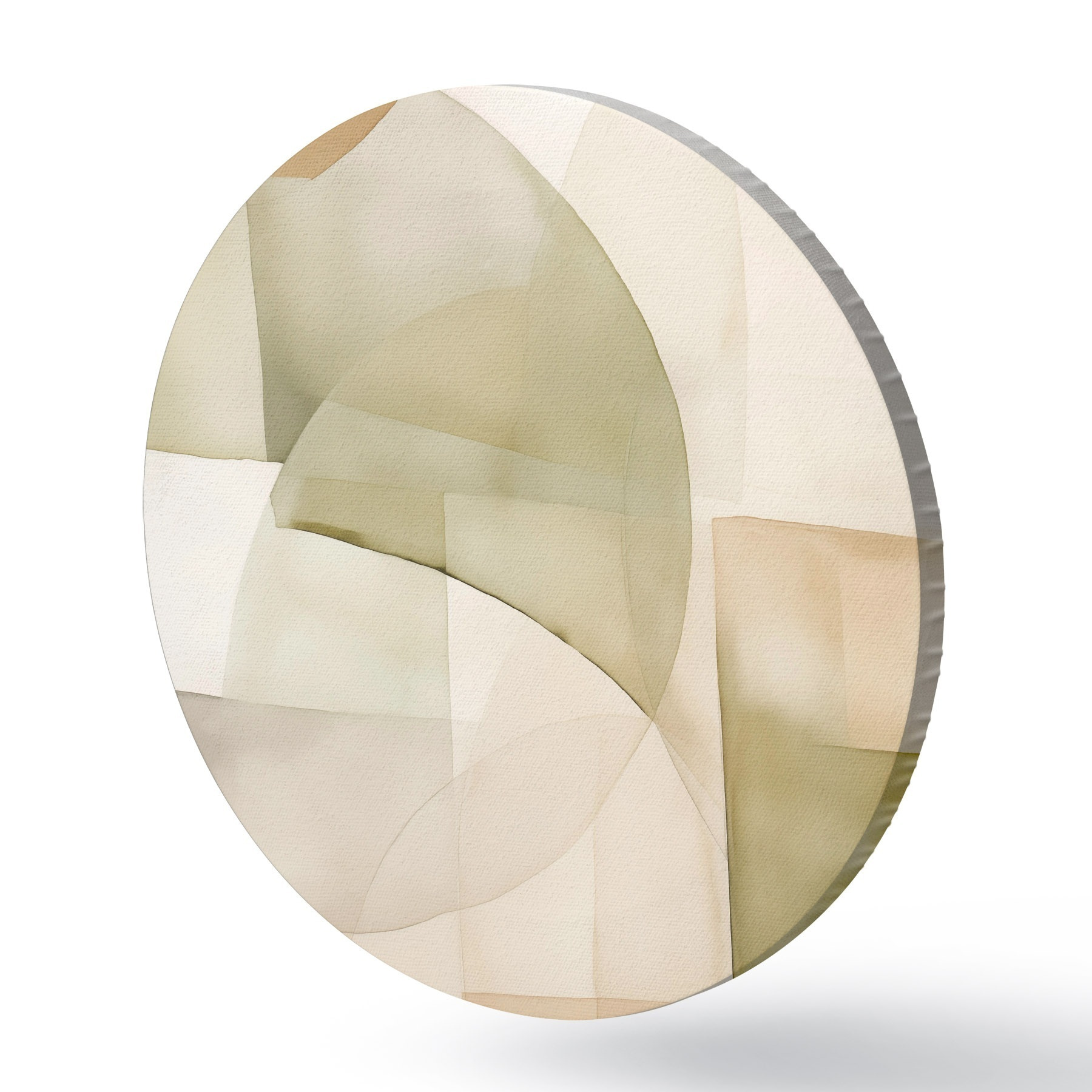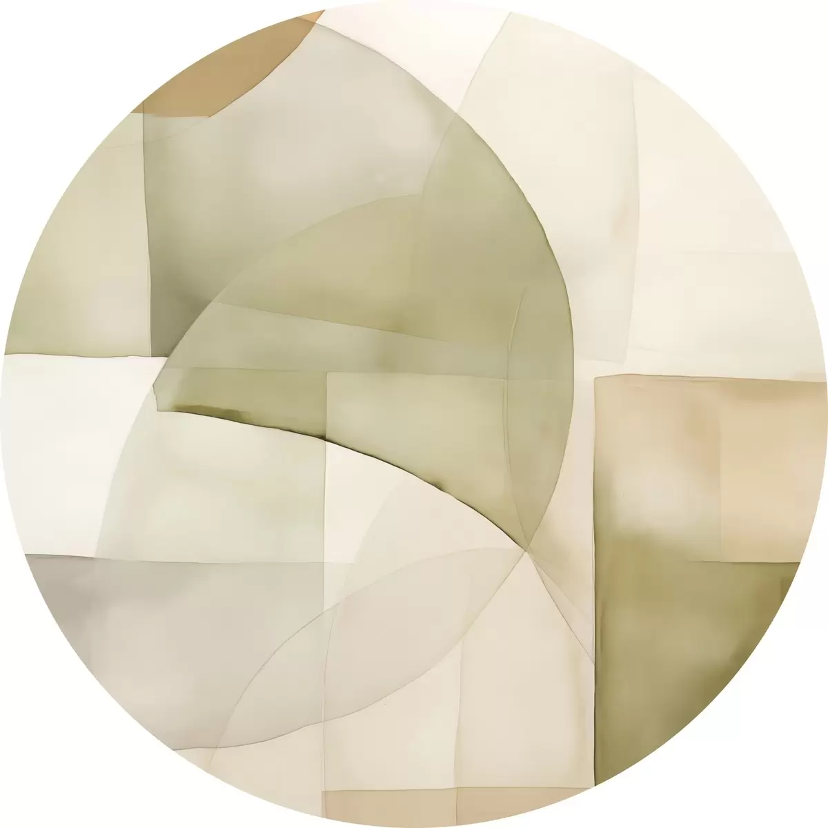 Runde Gemälde Abstrakte geometrische Formen mit Aquarellstruktur in Grün-, Braun- und Beigetönen r45929