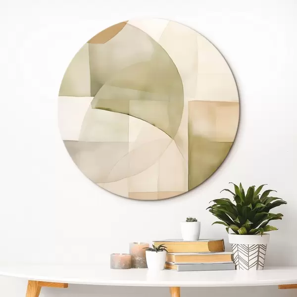 Runde Gemälde Abstrakte geometrische Formen mit Aquarellstruktur in Grün-, Braun- und Beigetönen r45929
