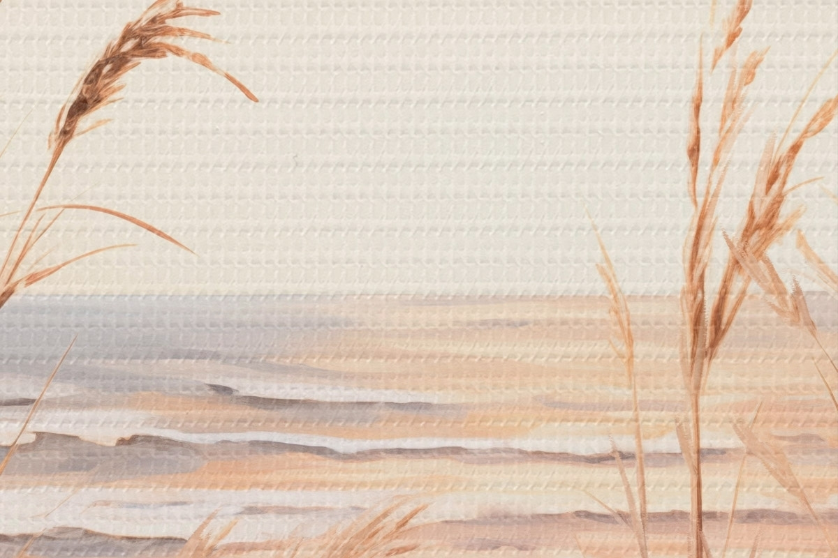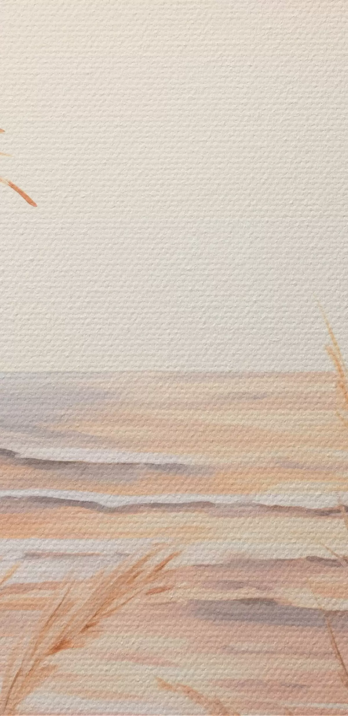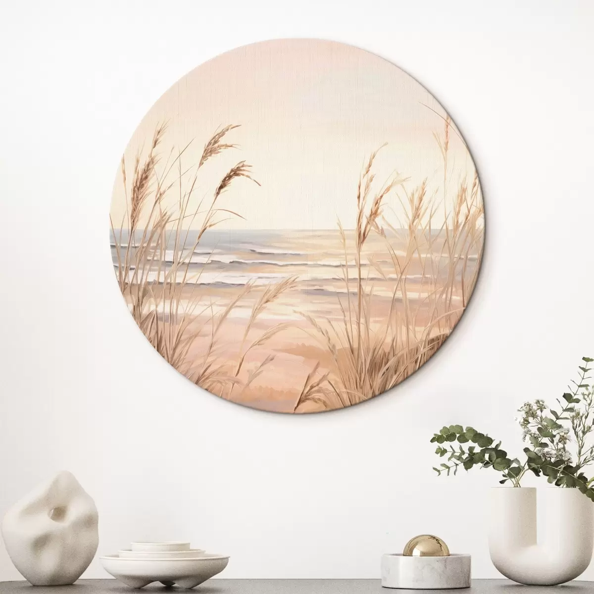 Runde Gemälde Pampasgras mit pastelloranger Farbpalette, hellrosa Himmel, eine ruhige Landschaft r45935