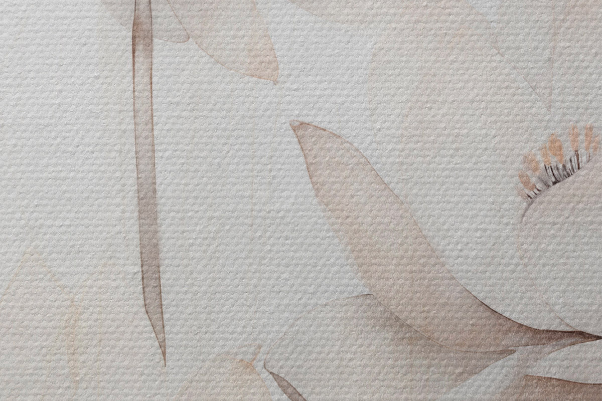 Bild Weiße Lotusblumen mit dunkler Blattstruktur, heller Hintergrund, minimalistisches Design Nr r45936