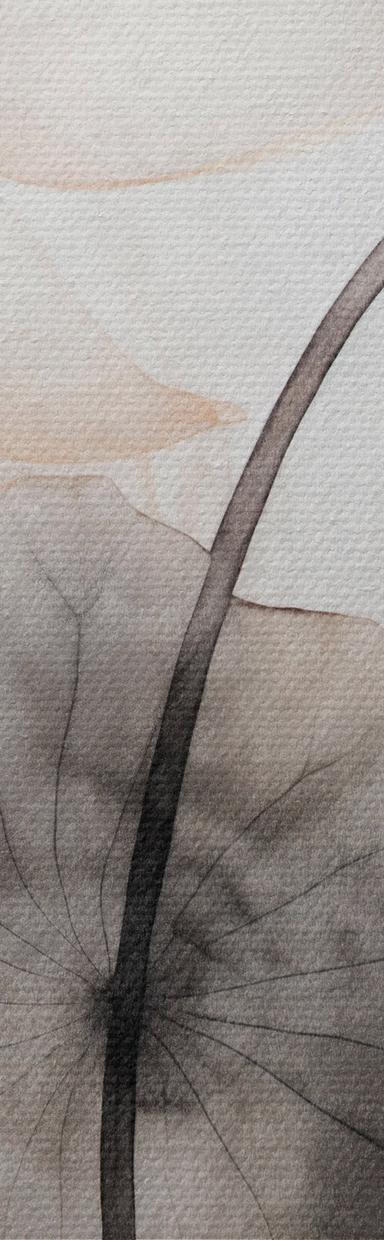 Bild Weiße Lotusblumen mit dunkler Blattstruktur, heller Hintergrund, minimalistisches Design Nr r45937