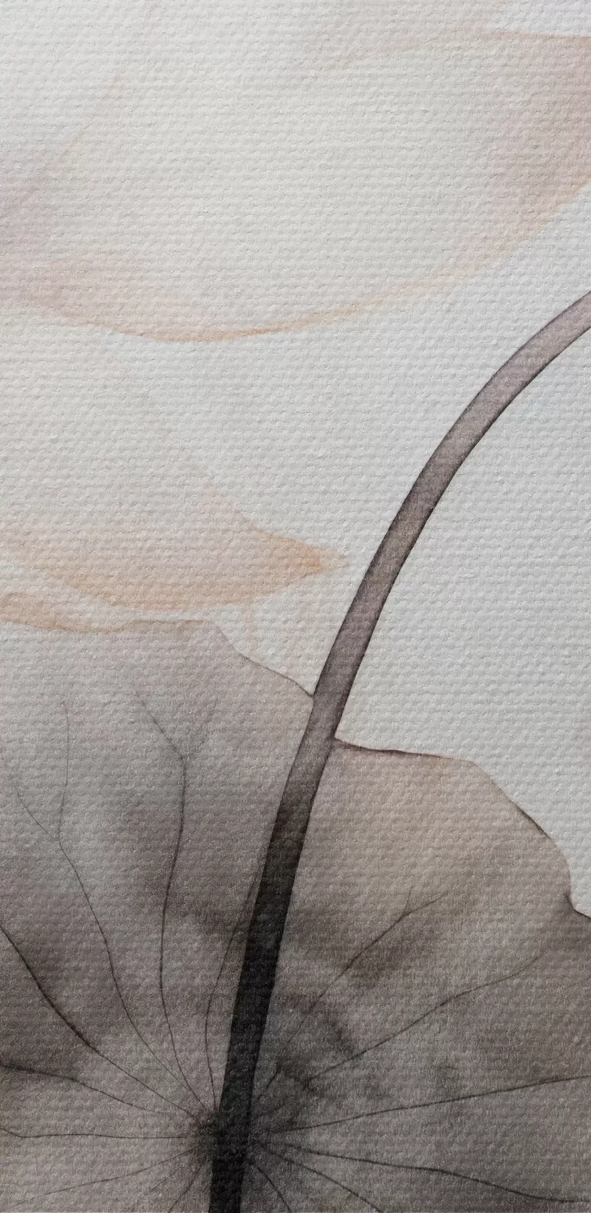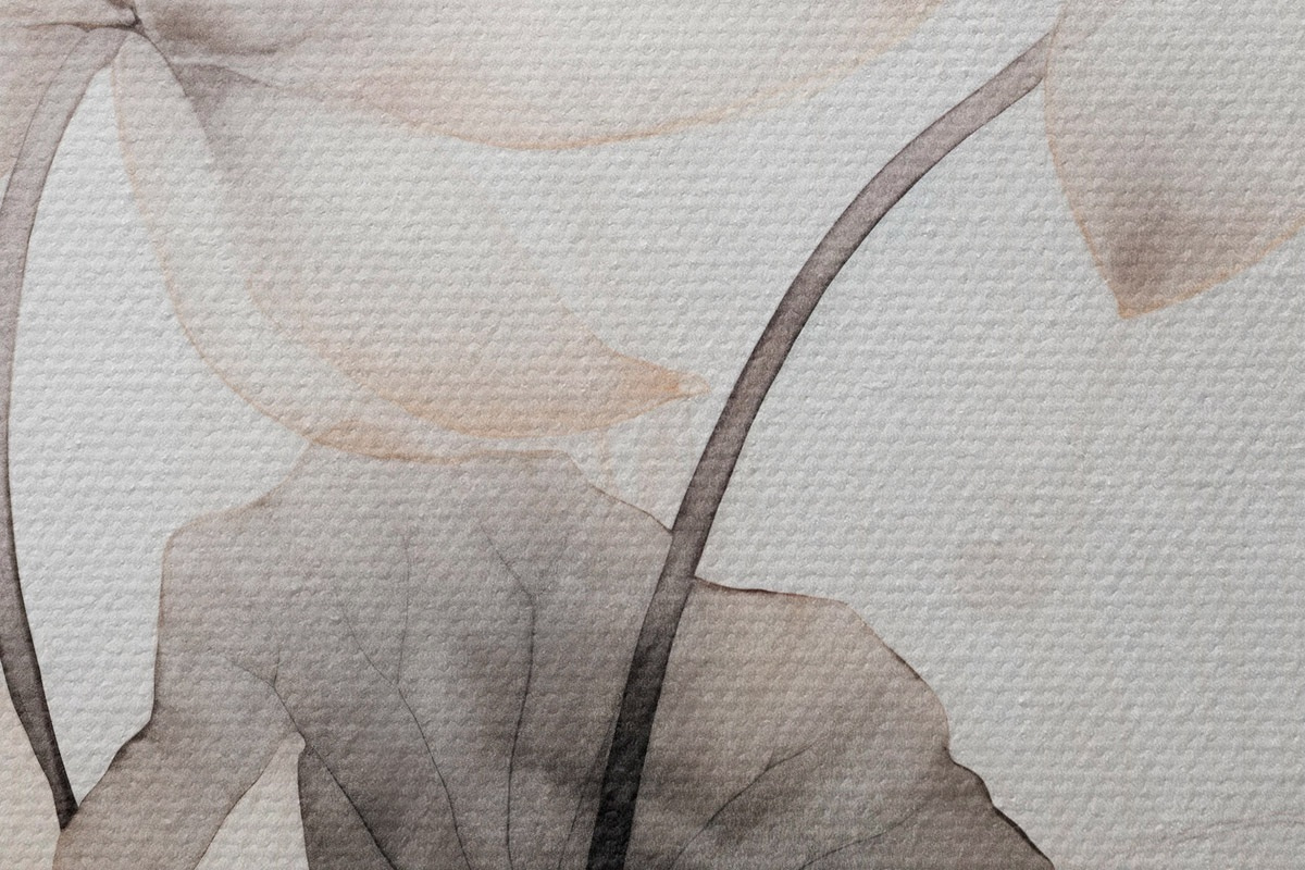 Bild Weiße Lotusblumen mit dunkler Blattstruktur, heller Hintergrund, minimalistisches Design Nr r45937