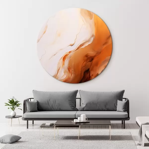 Runde Gemälde Abstrakte Malerei-Imitation in Weiß und Orange, Fluid Art mit wellenförmigen Linien, moderne Kunst r45939