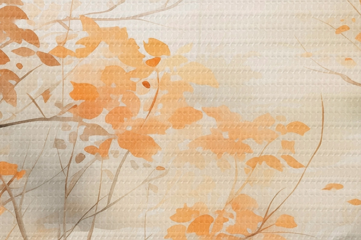 Bild Herbstbäume mit orangefarbenen Blättern und Zweigen, sanfter Aquarellstil, zarte Pinselstriche Nr r45941