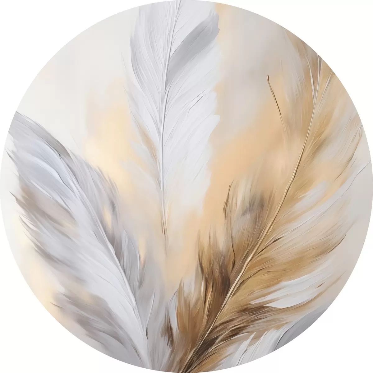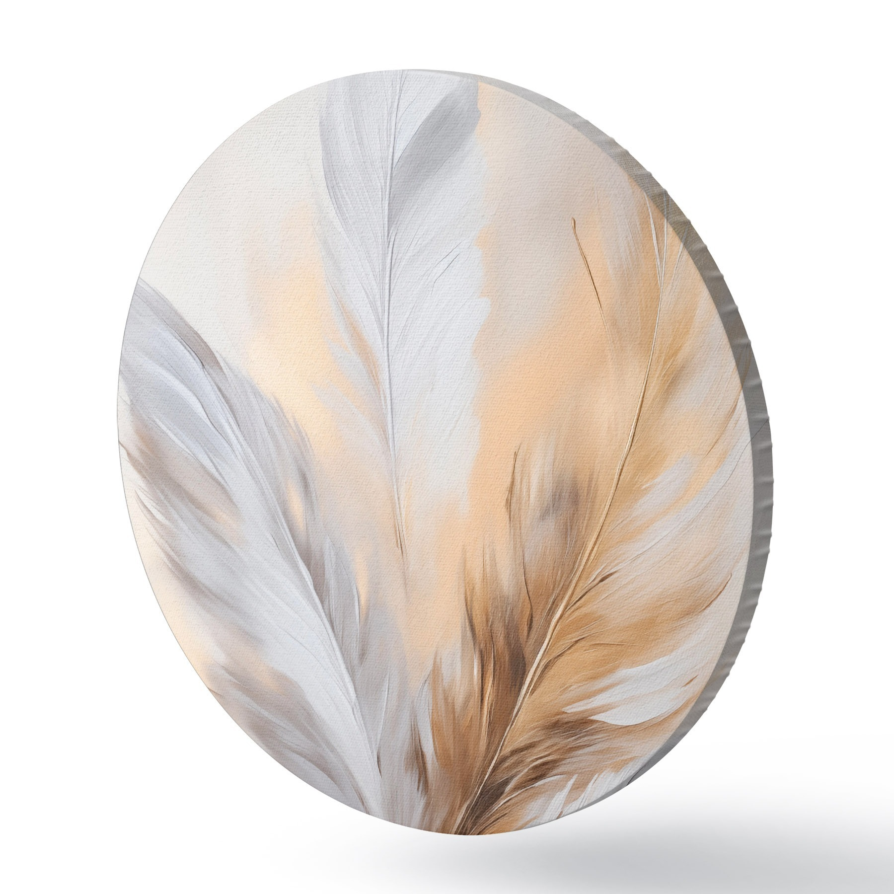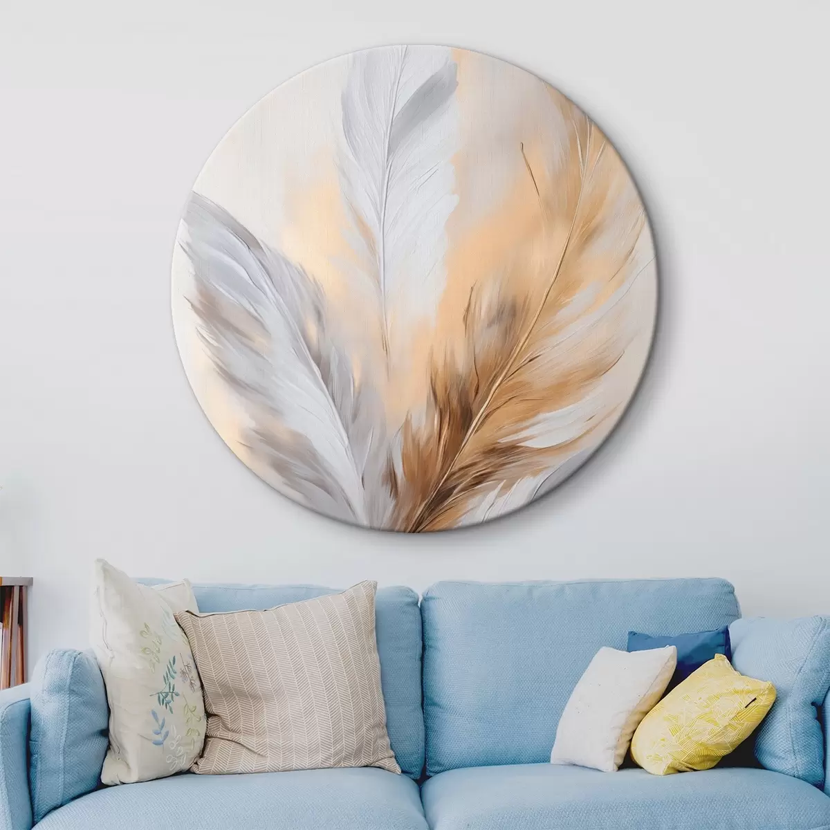 Runde Gemälde Federn mit orangefarbenen Akzenten, strukturierte minimalistische Komposition, moderne Kunst r45945