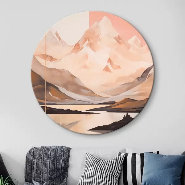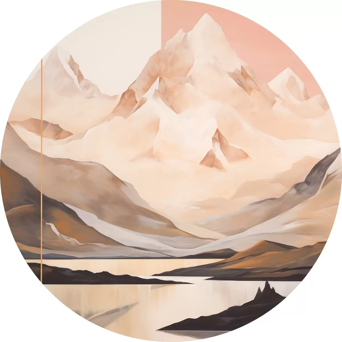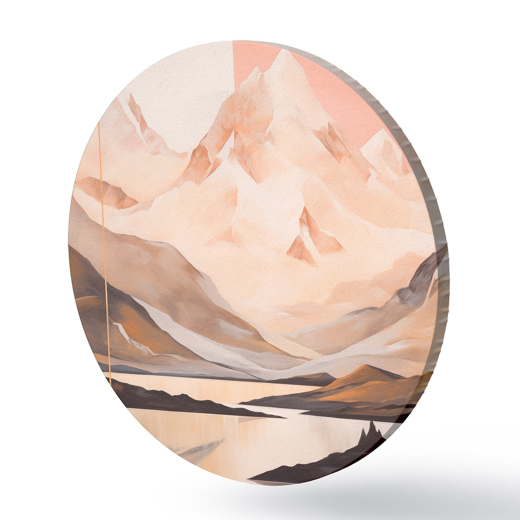 Runde Gemälde Abstrakte Landschaft mit Bergen und einem See, Pastellfarben, minimalistischer Stil r45949