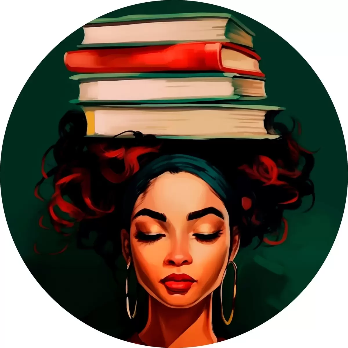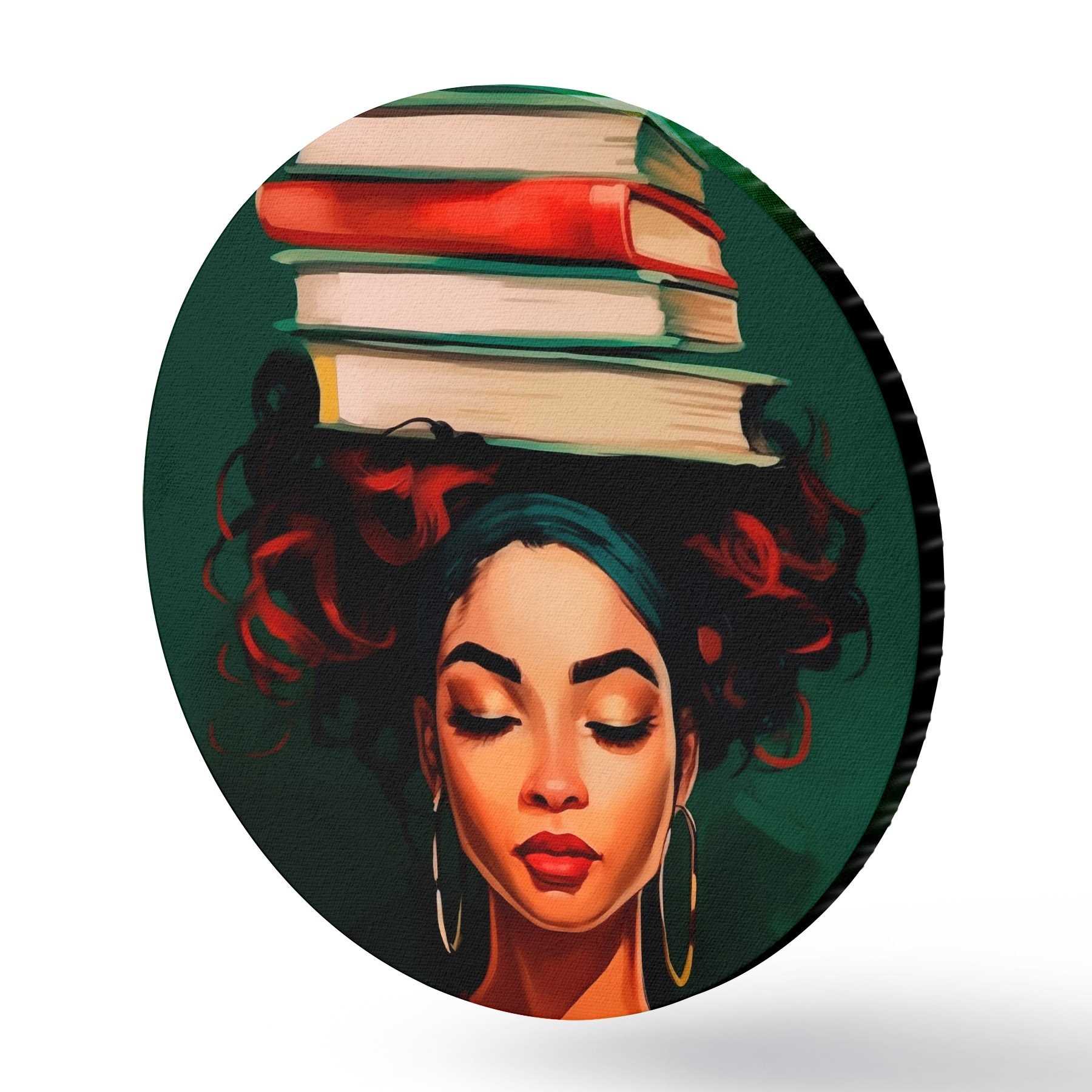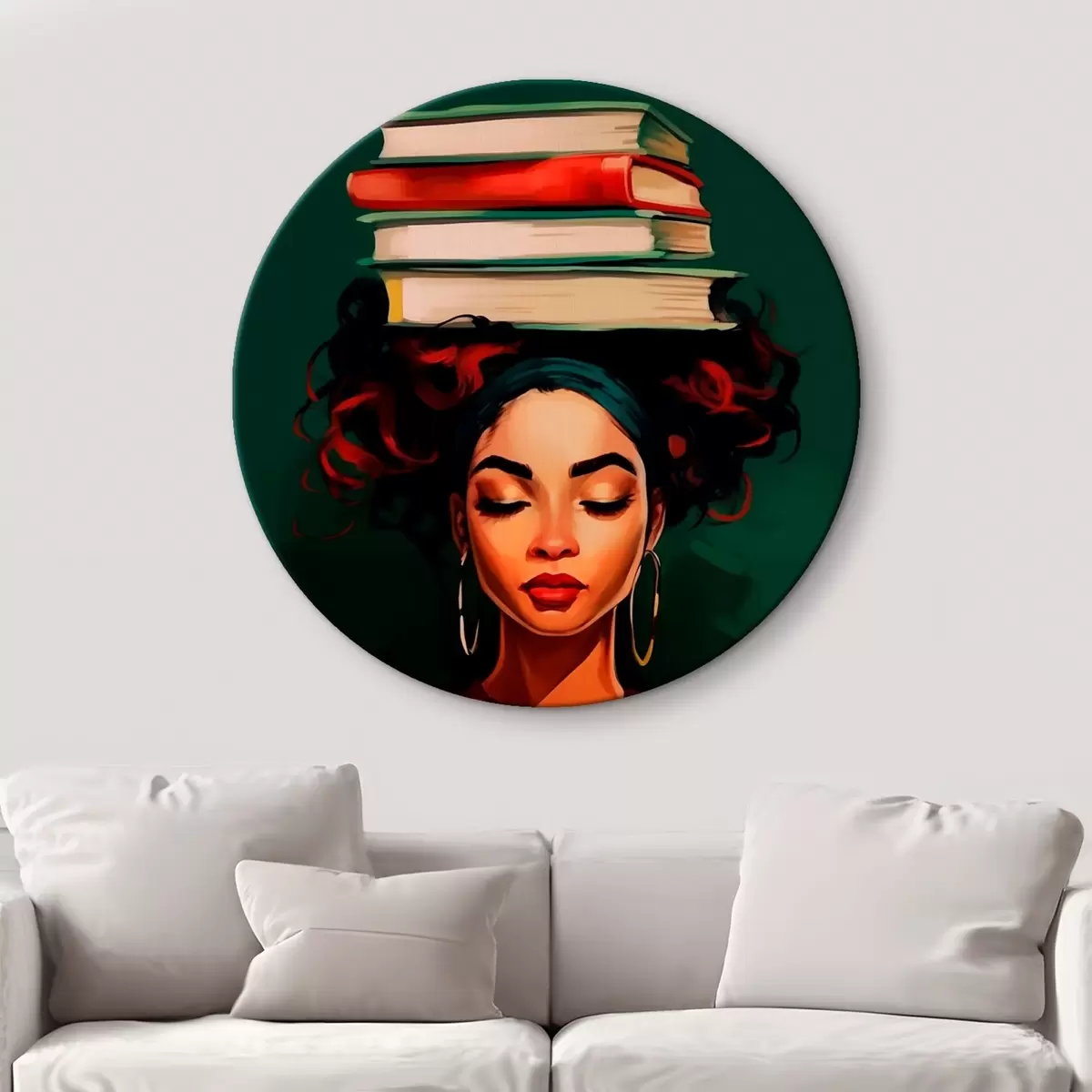 Runde Gemälde Frau mit Büchern auf dem Kopf r45952