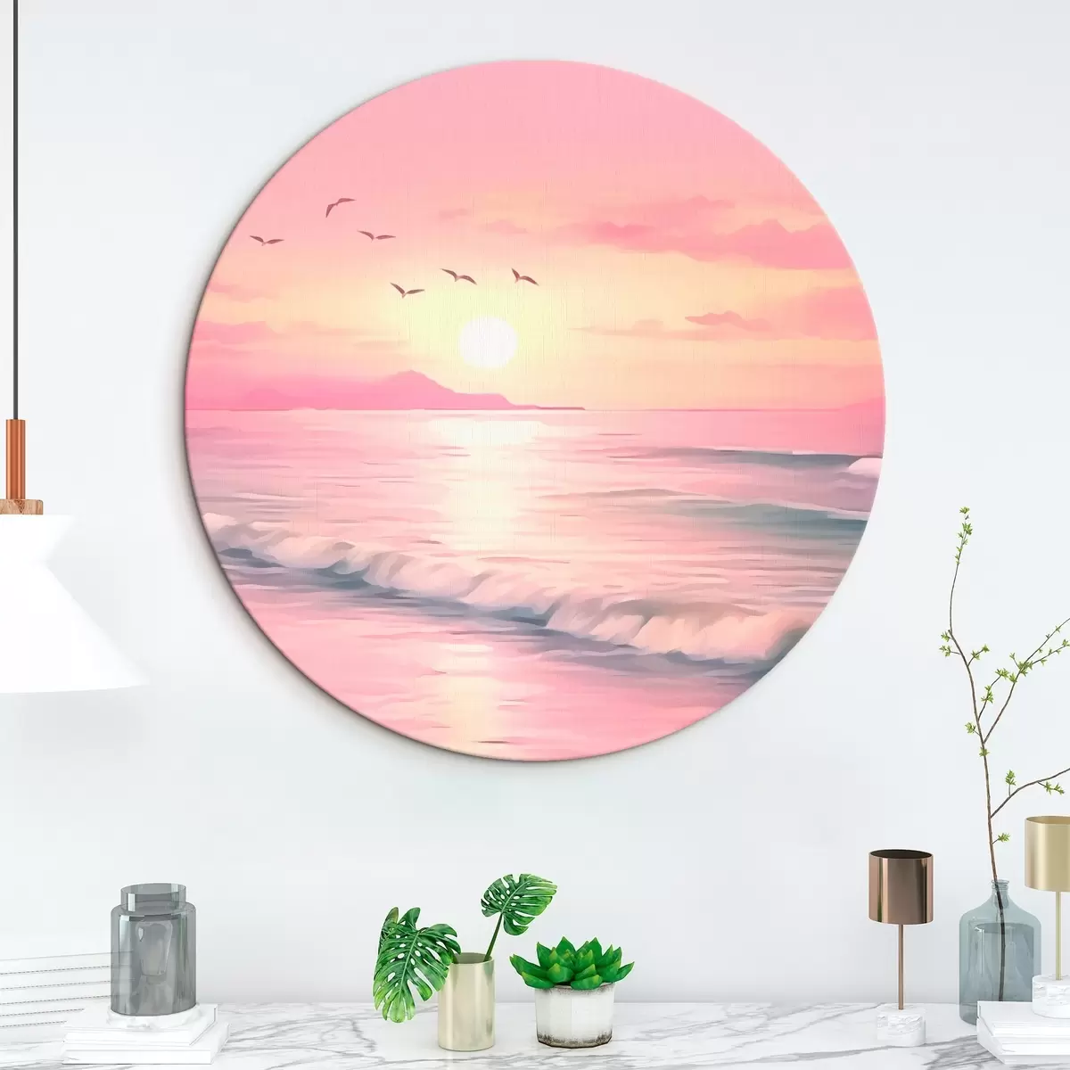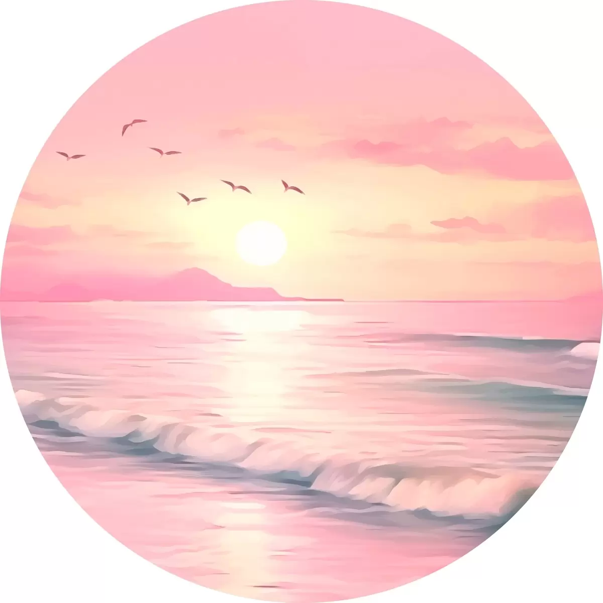 Runde Gemälde Rosa Sonnenuntergang über dem Meer r45955