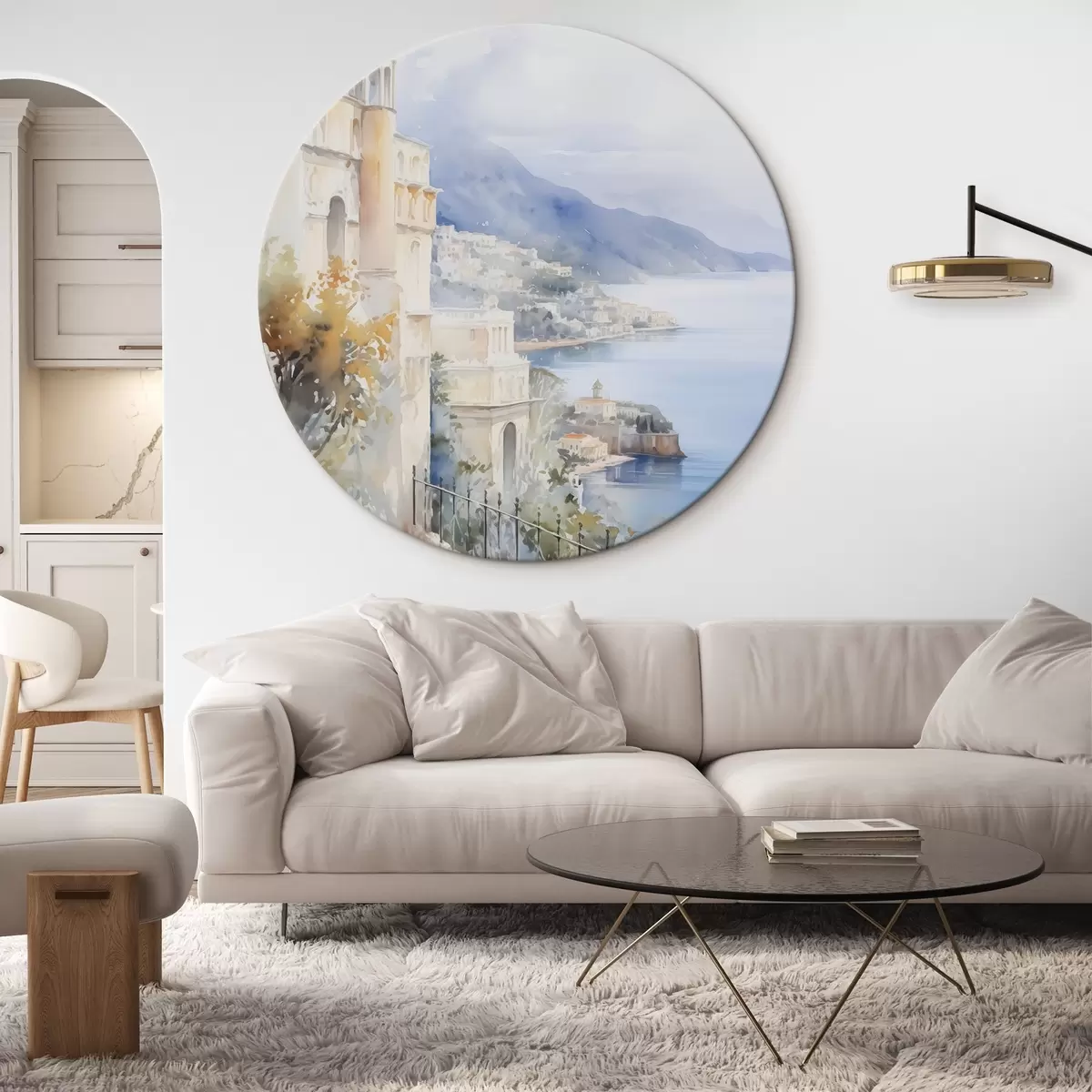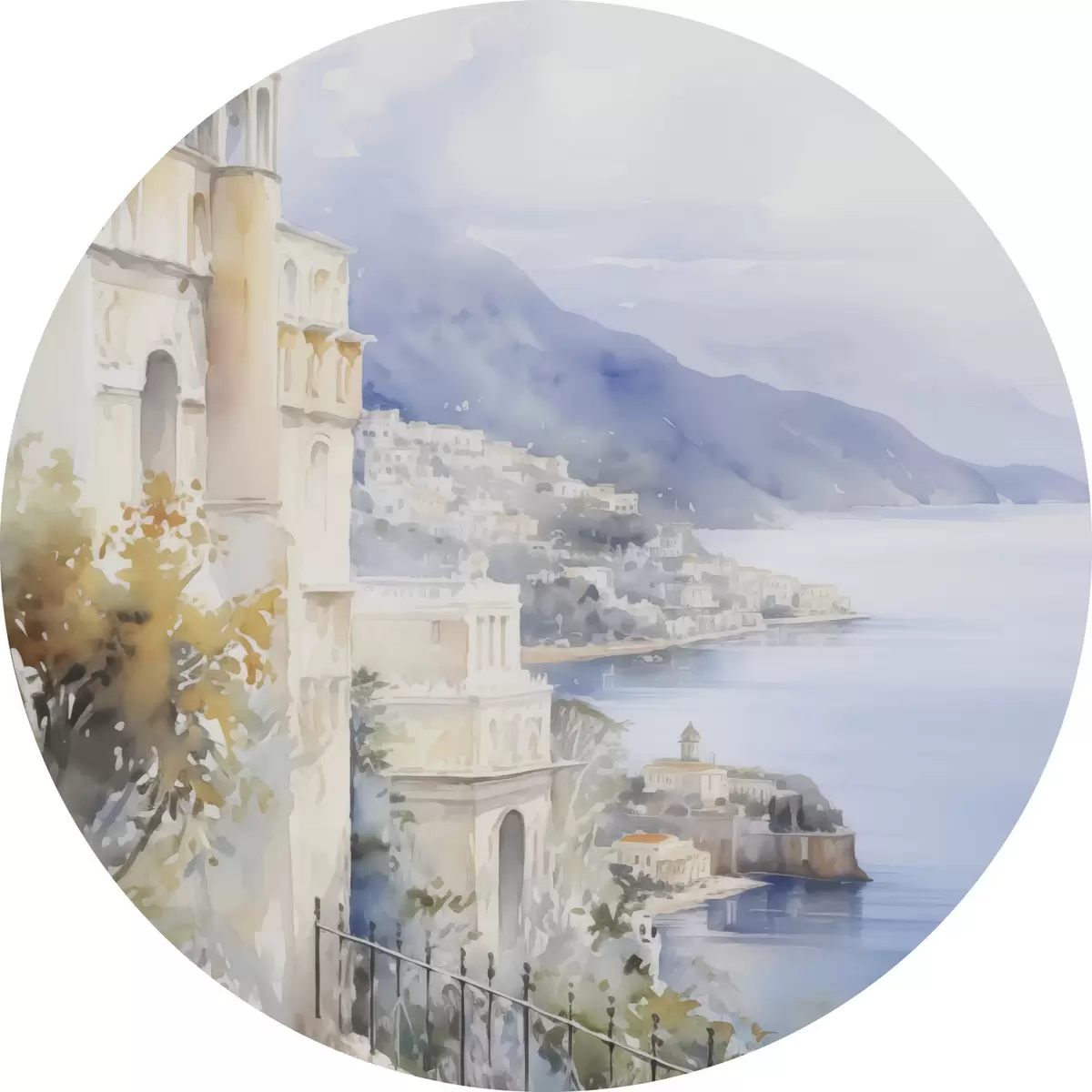 Runde Gemälde Bucht in der Nähe der Stadt, Aquarellimitation r45979