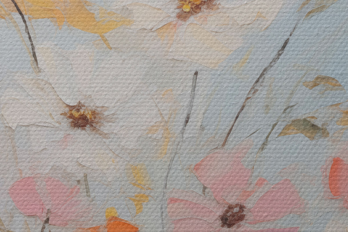 Das feine Fadengeflecht auf dieser Leinwand ähnelt der Oberfläche von professionellen Künstlerleinwänden.