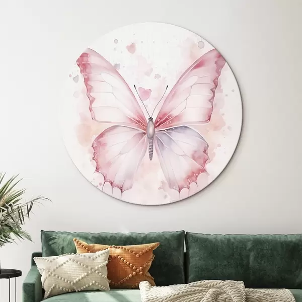 Runde Gemälde Rosa Schmetterling, Aquarelltechnik r46073