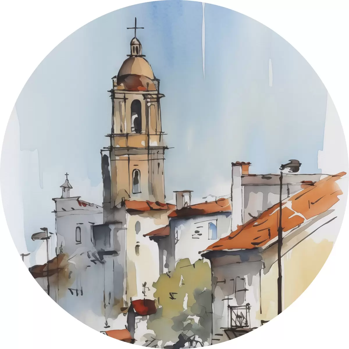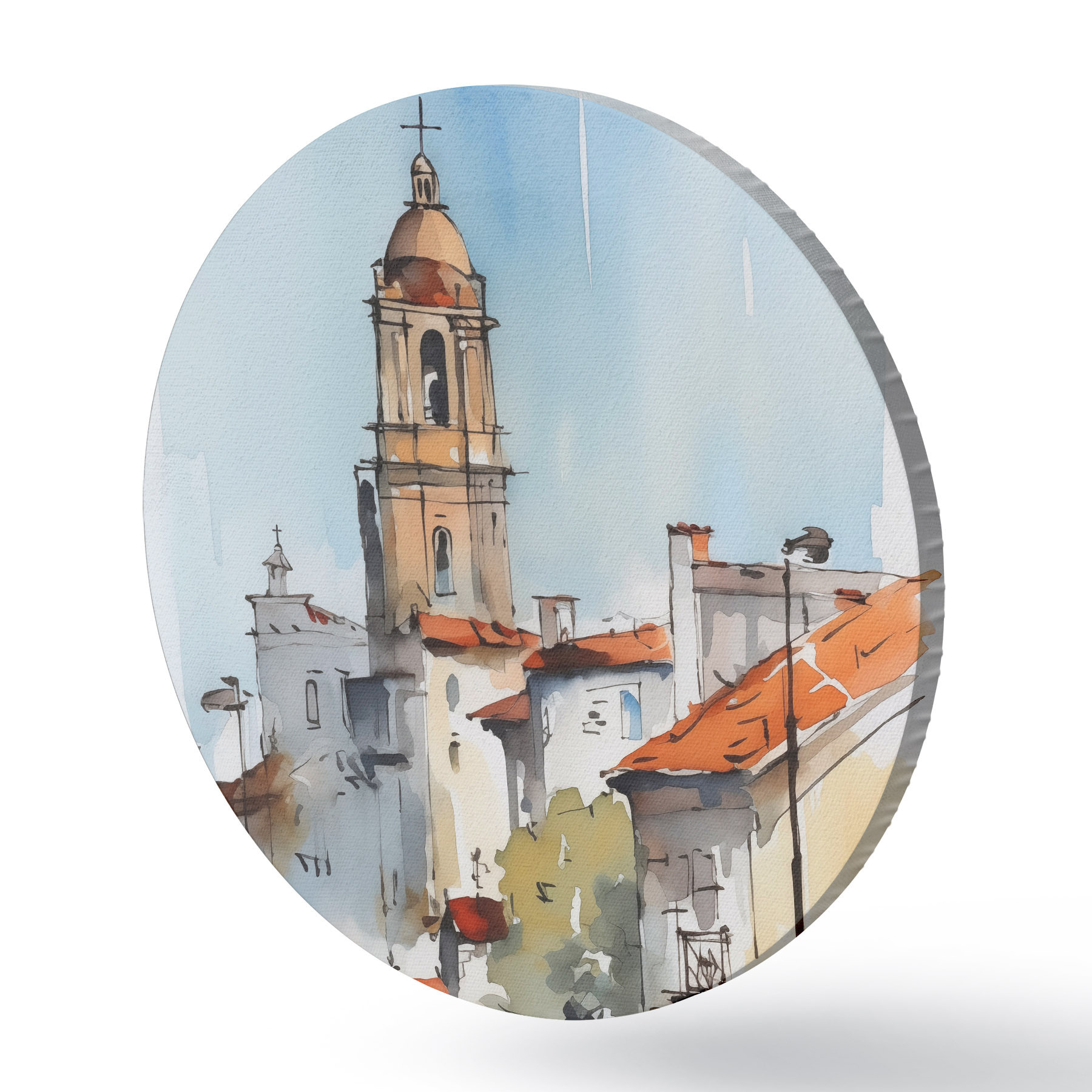Runde Gemälde Stadtlandschaft im Aquarellstil r46120