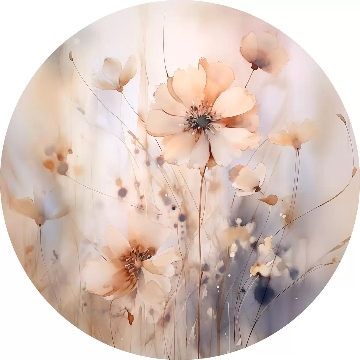 Runde Gemälde Zarte abstrakte Wildblumen r46139