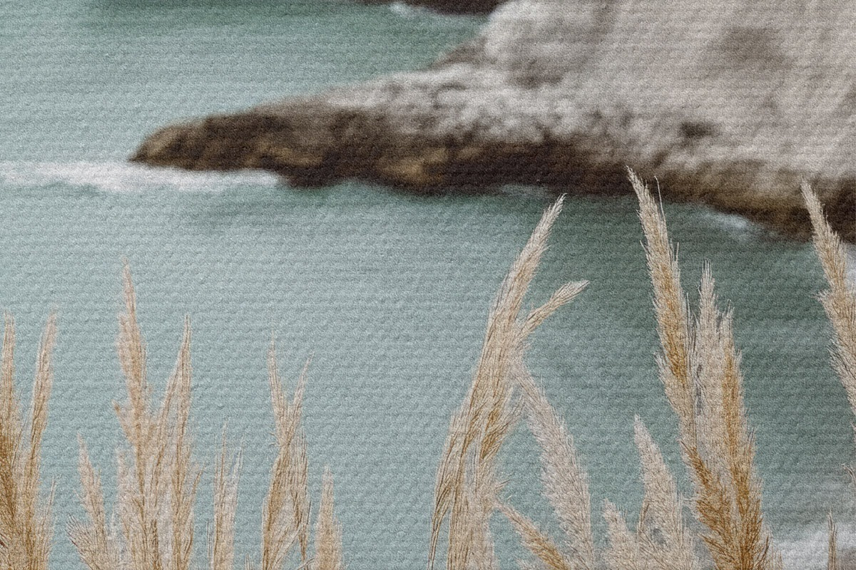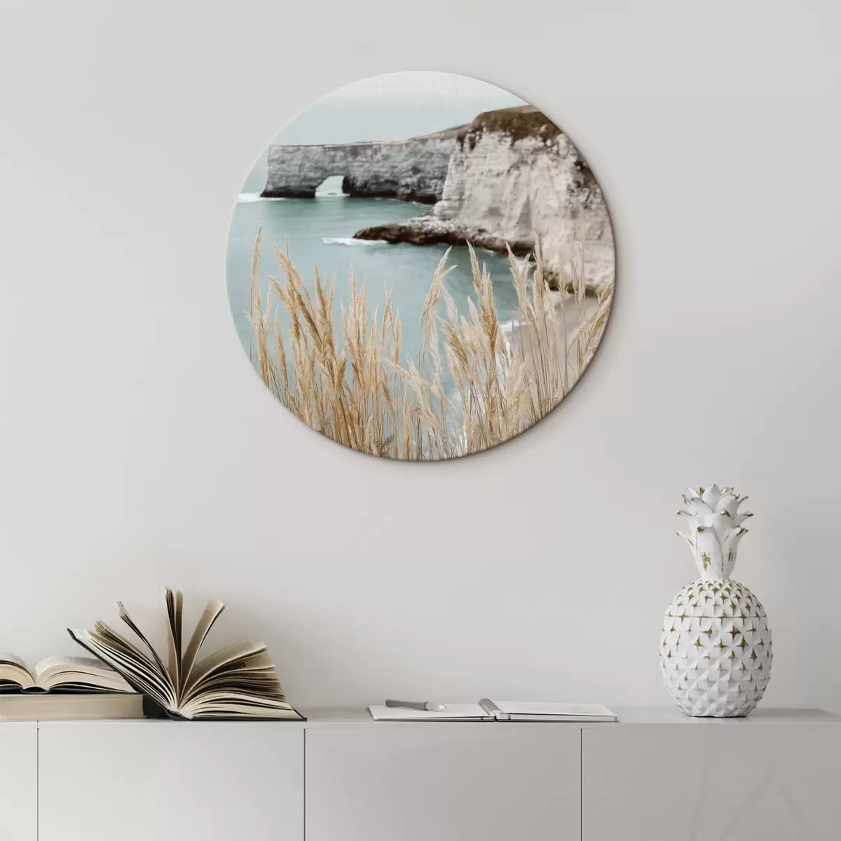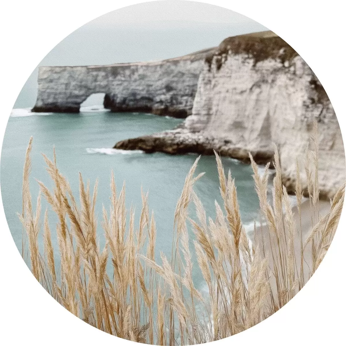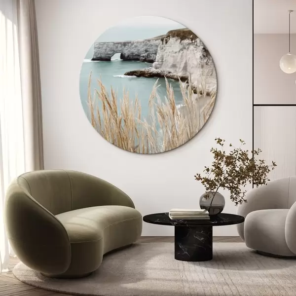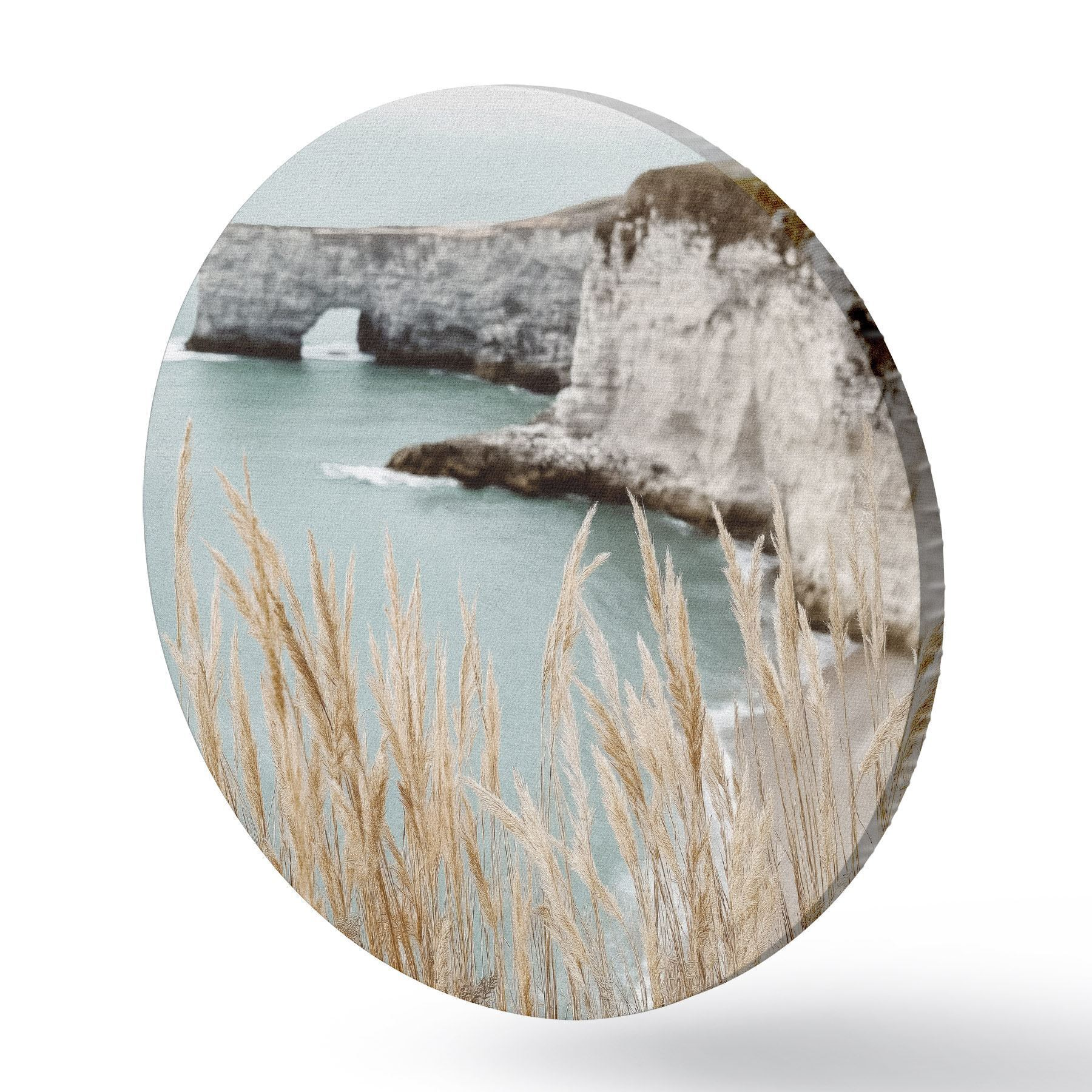 Runde Gemälde Küstenklippen mit Schilf im Vordergrund r46141