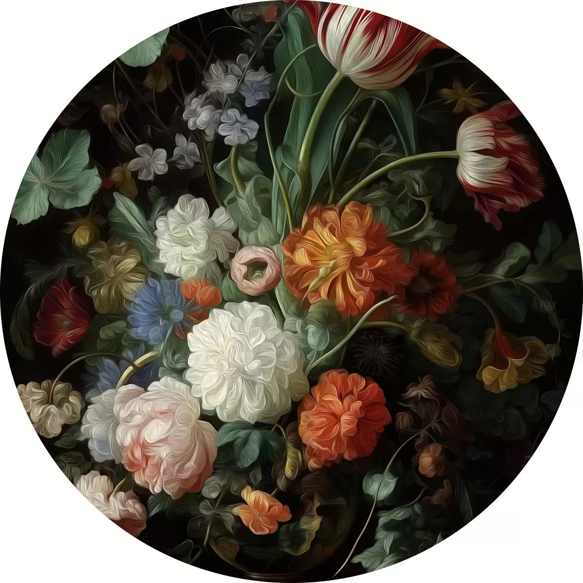 Runde Gemälde Blumenarrangement im Stil alter Stillleben r46145