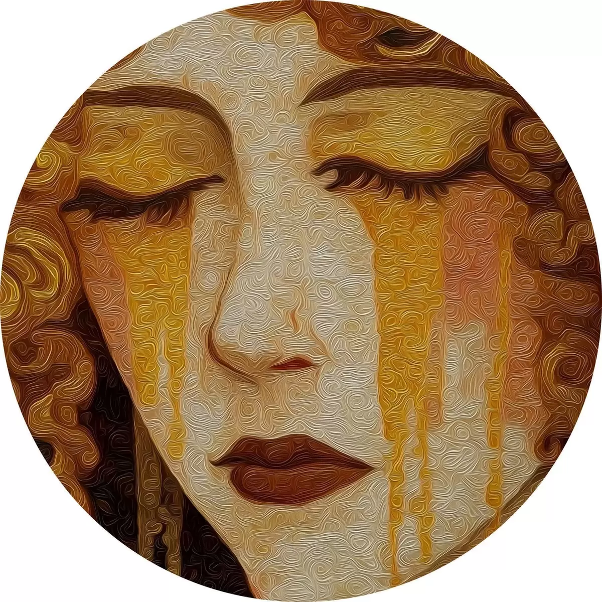 Runde Gemälde Porträt einer Frau mit roten Haaren und dekorativem Make-up r46149