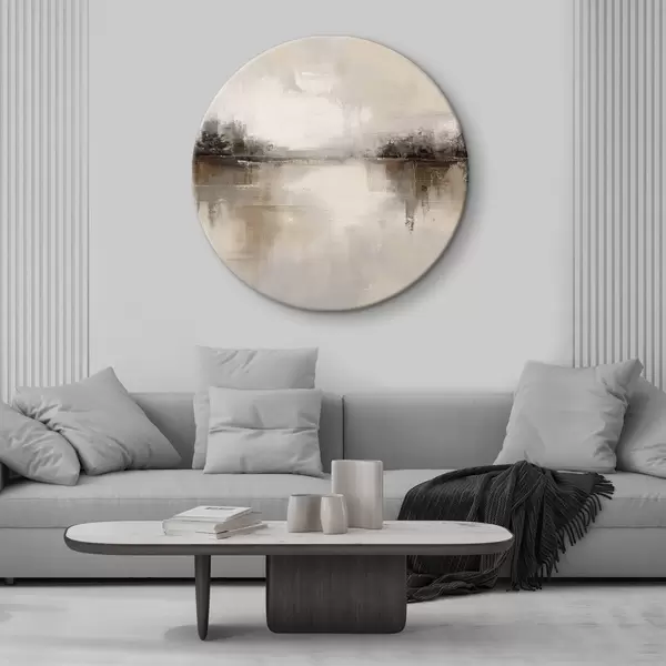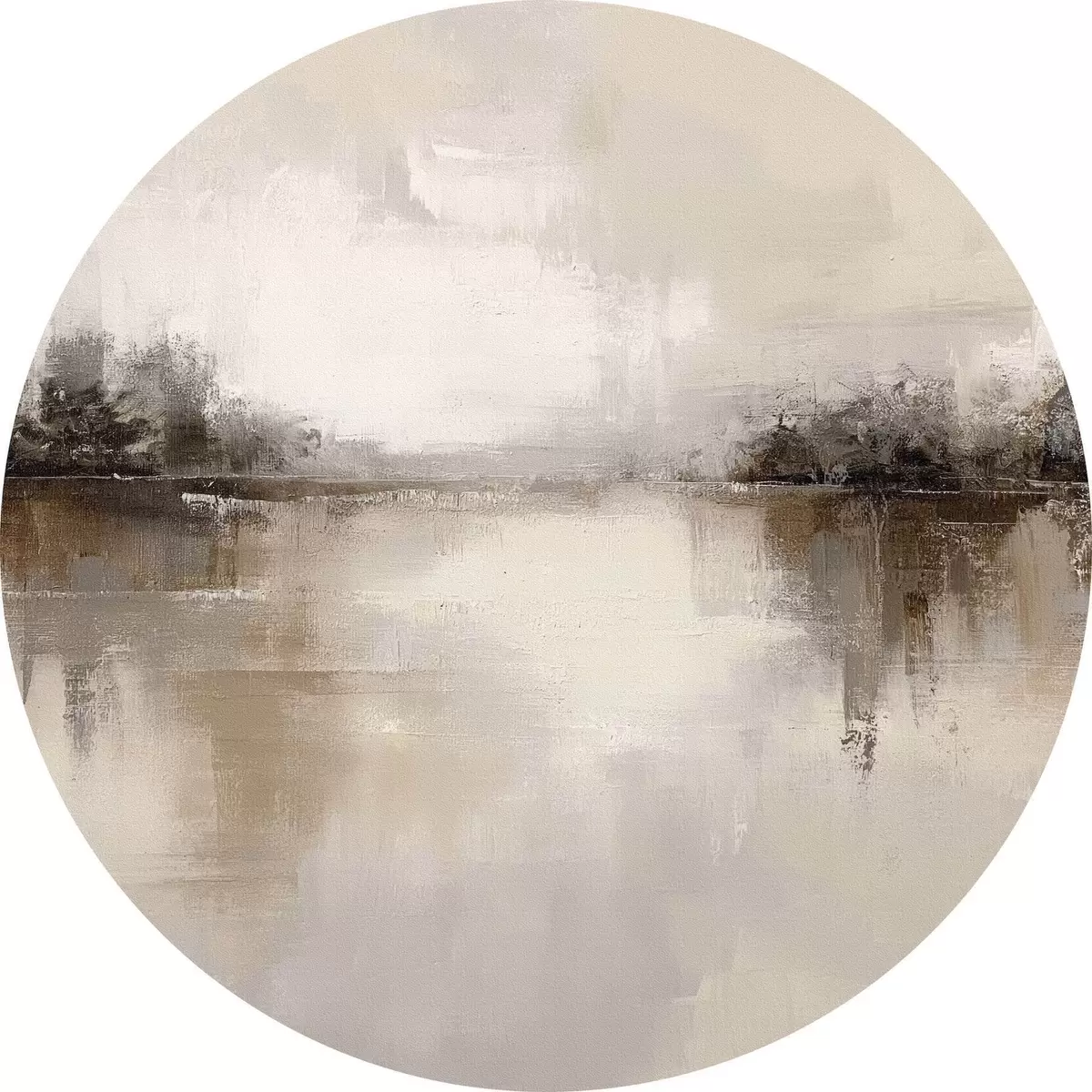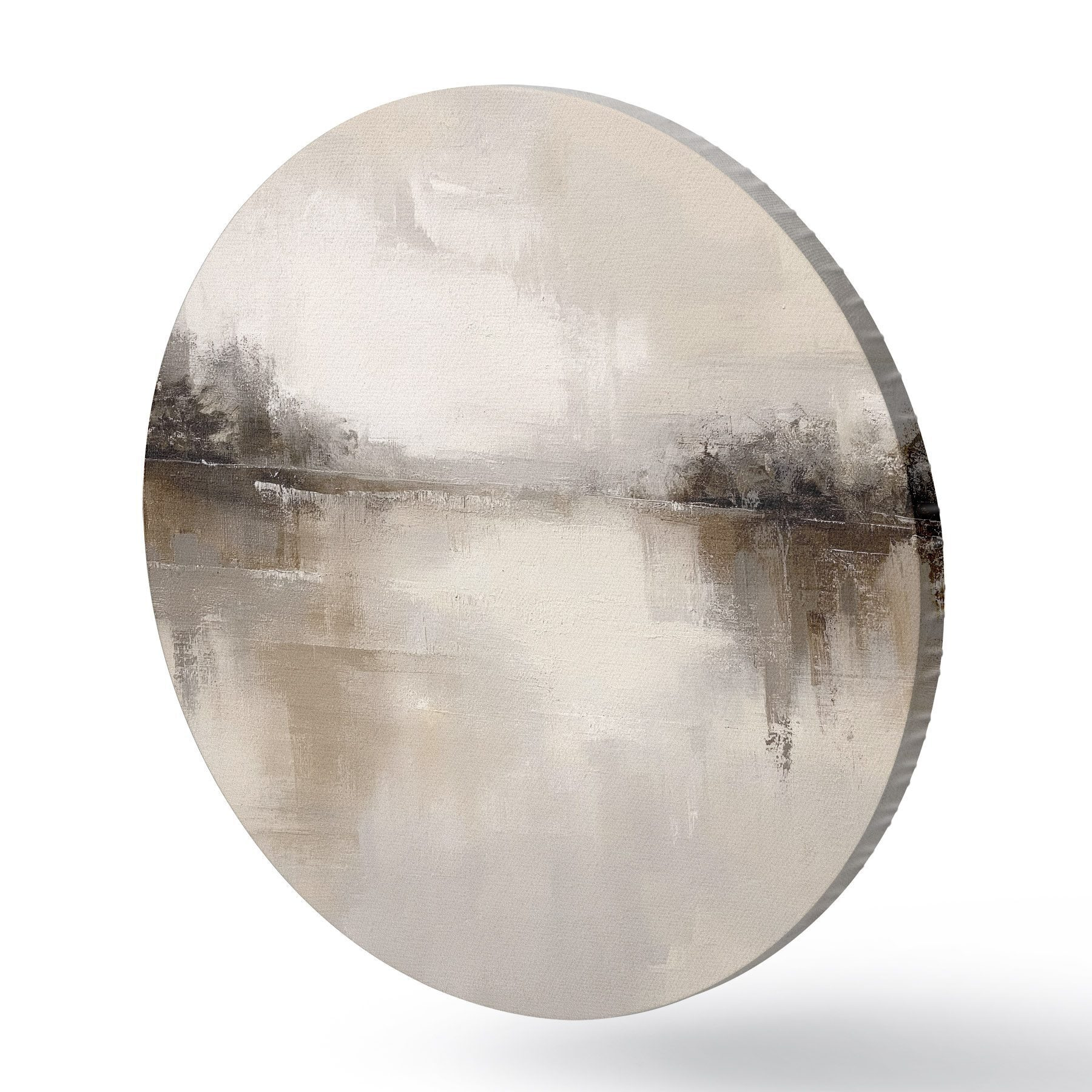 Runde Gemälde Weiche Landschaft mit einem See in warmen Beige-Grau-Tönen r46158