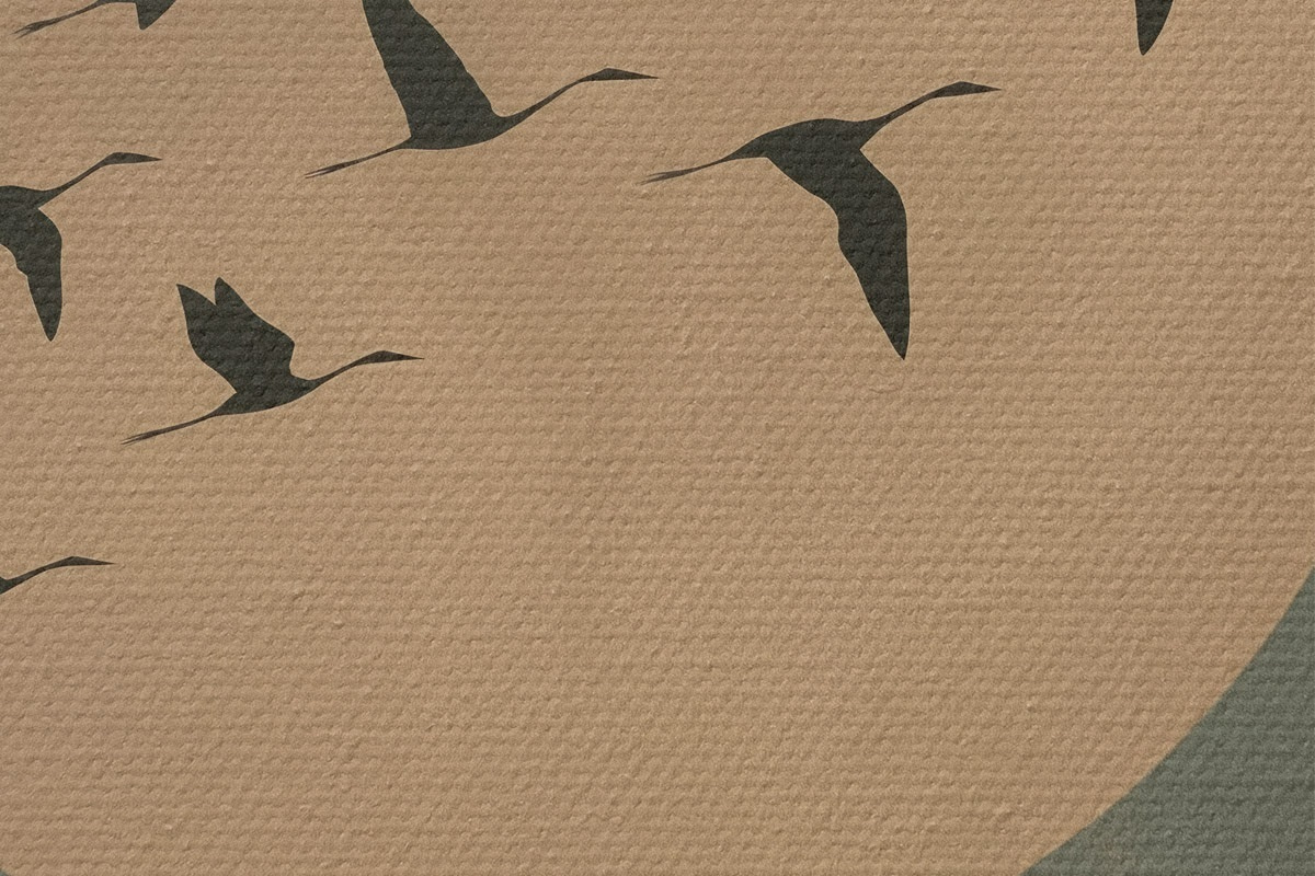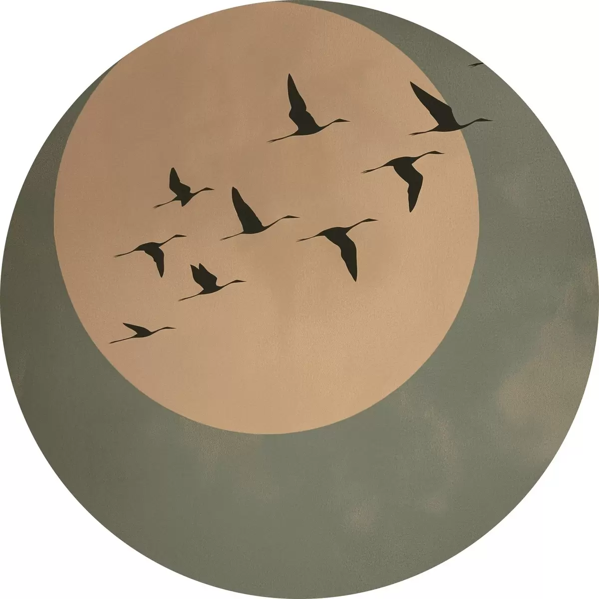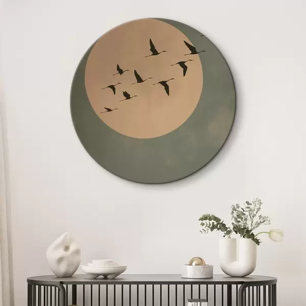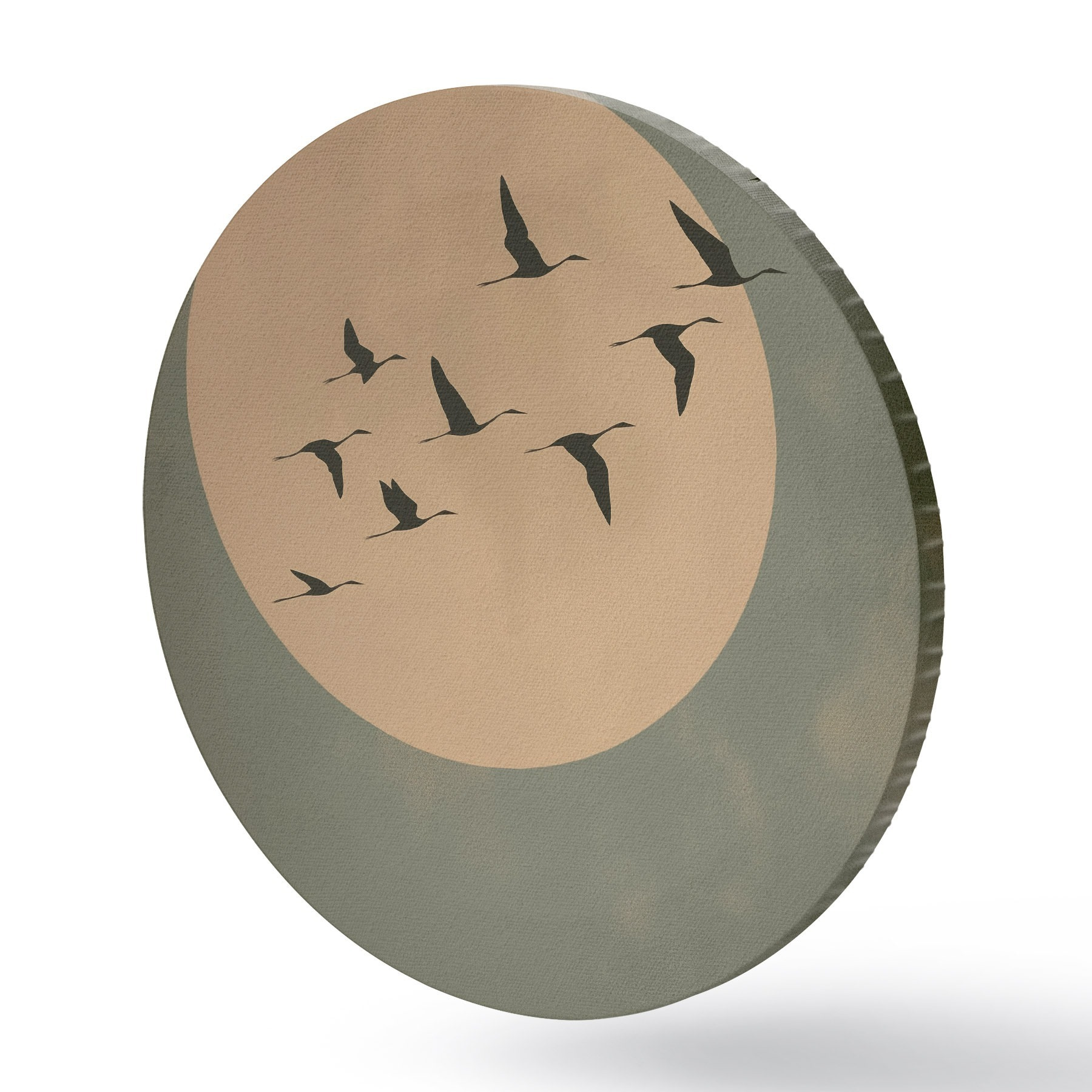 Runde Gemälde Ein Vogelschwarm fliegt vor einem großen, warmen Mond r46162