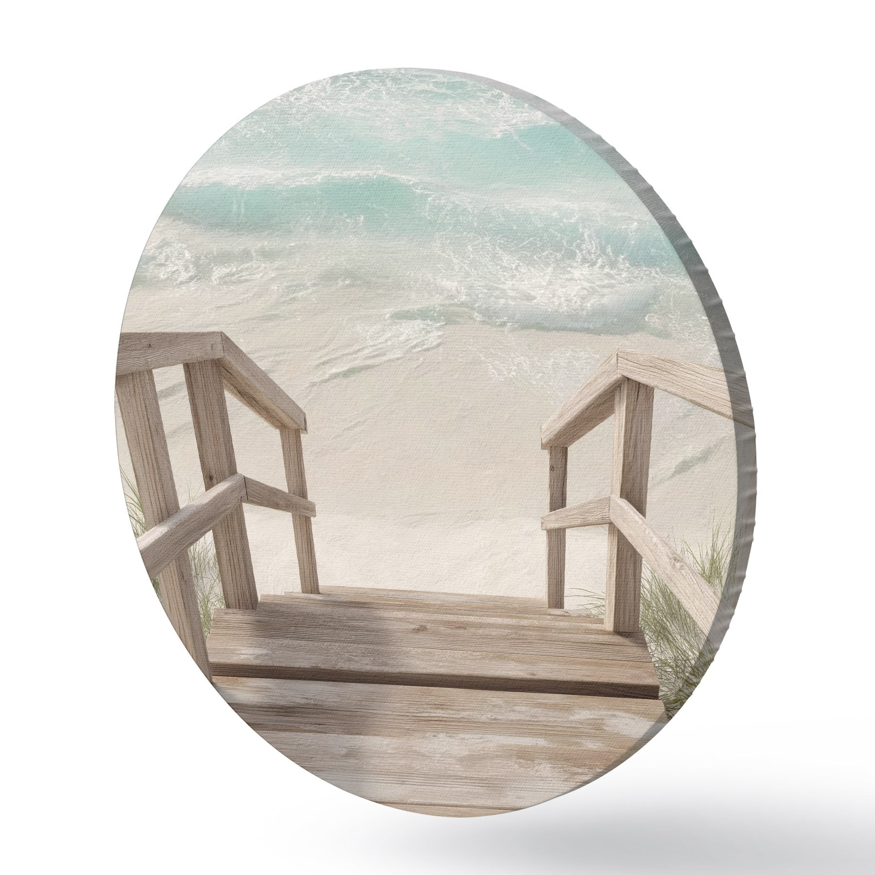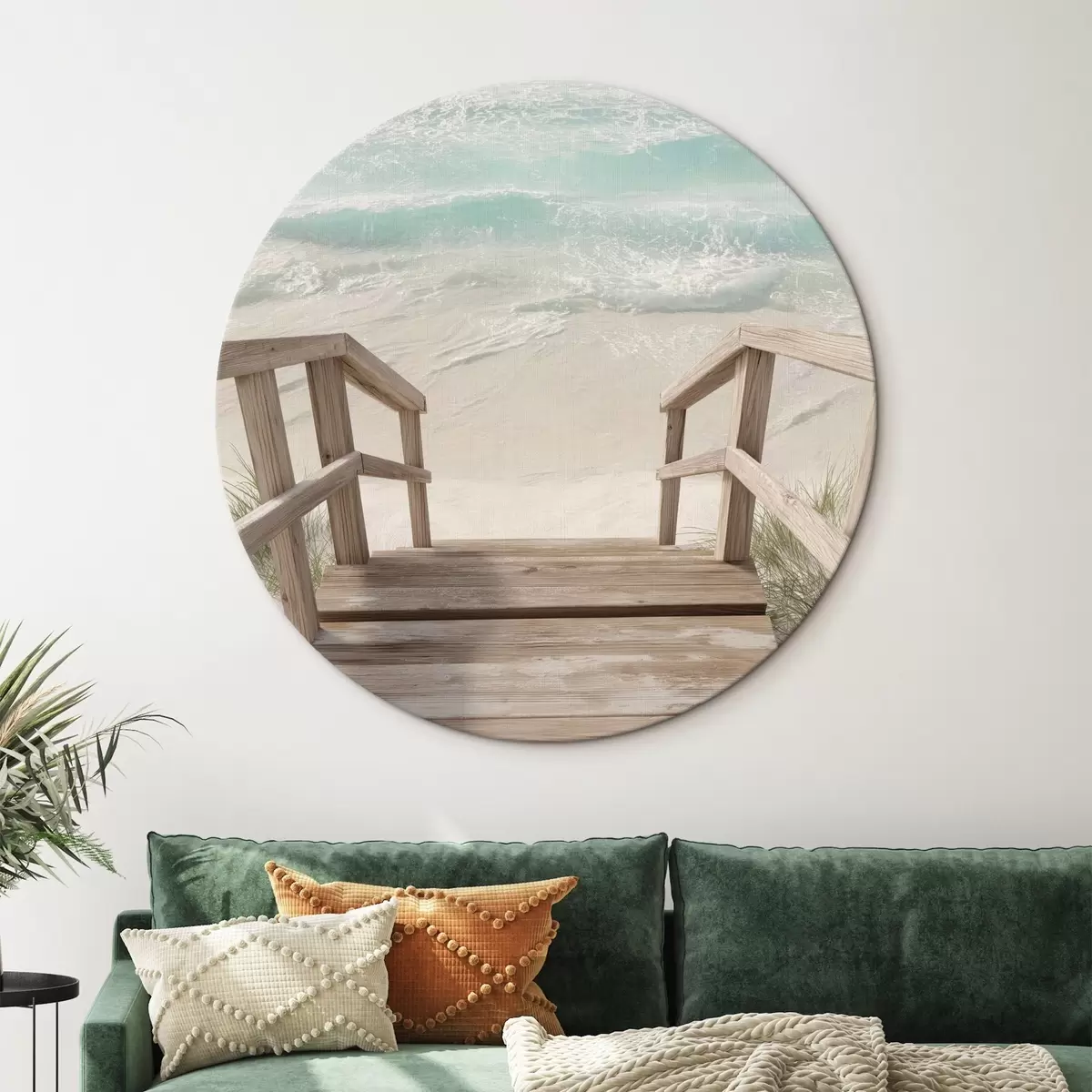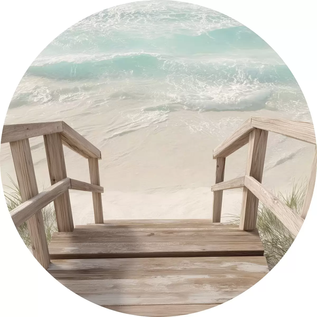 Runde Gemälde Holztreppe, die zu einem türkisfarbenen Strand führt r46163