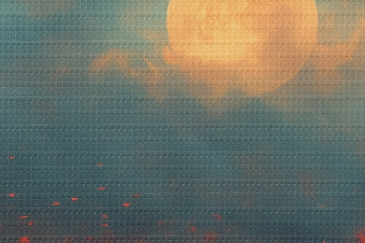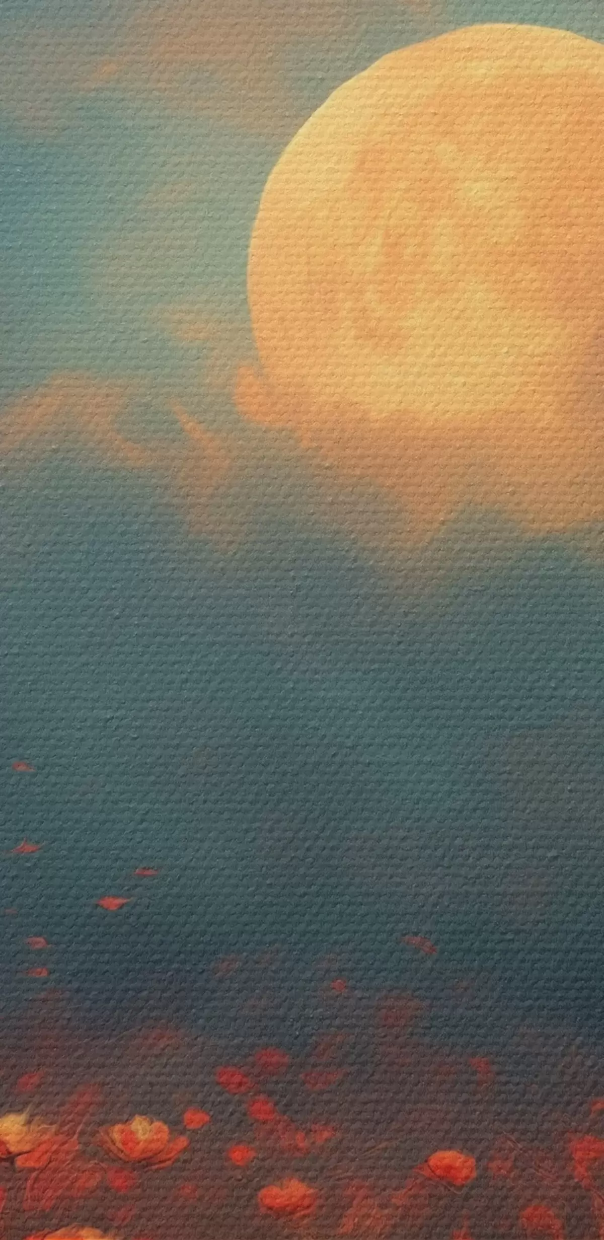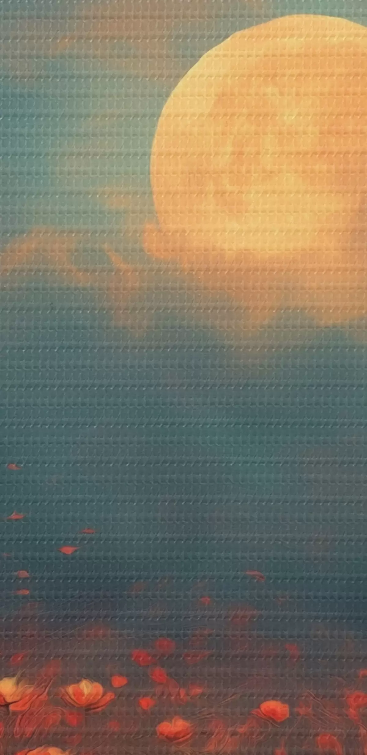 Runde Gemälde Mond über einem Feld voller roter Blumen an einem nebligen Abendhimmel r46167