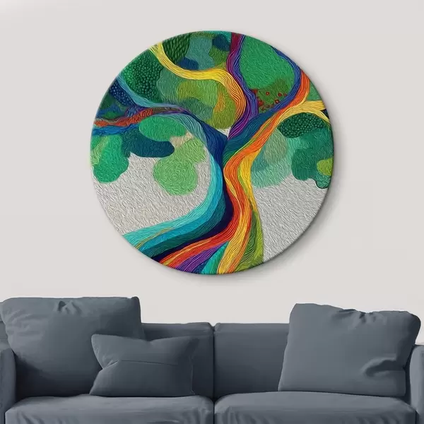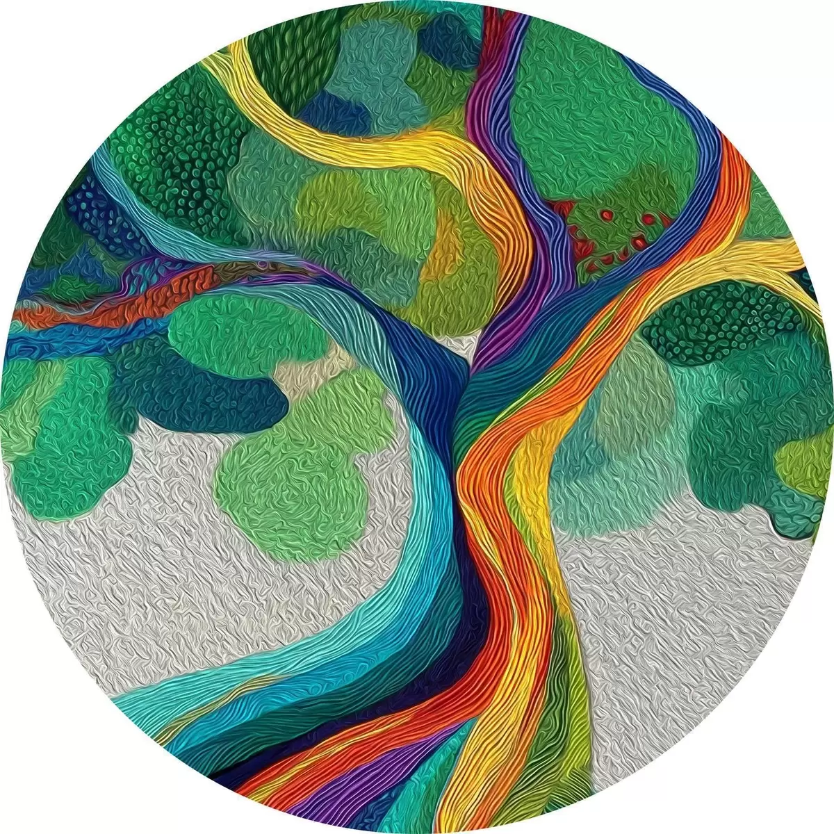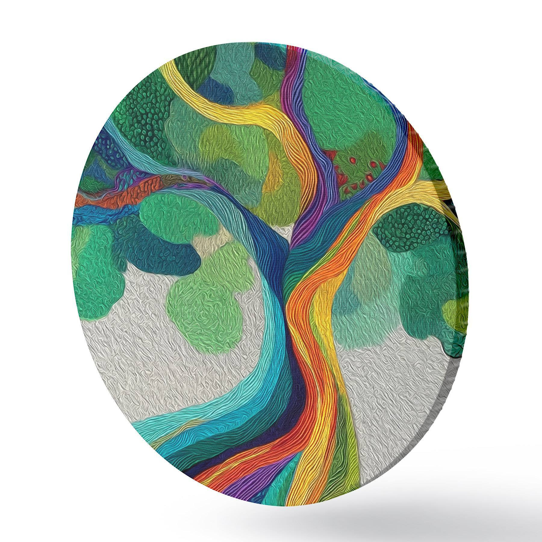 Runde Gemälde Baum mit Regenbogenästen auf grünem Hintergrund r46173