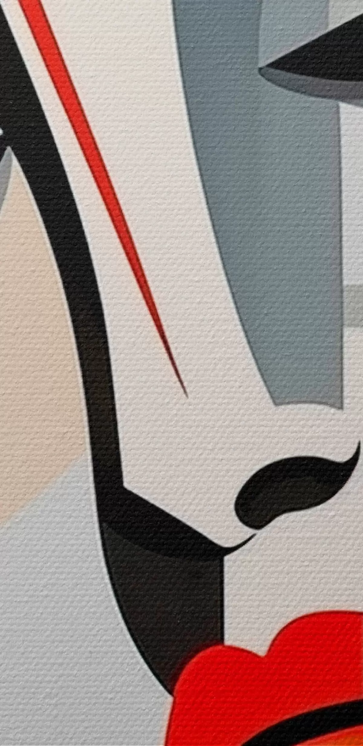 Um die Leinwand auf Keilrahmen zu spannen, ohne das Bild zu beschädigen, verwenden wir ein gespiegeltes Bild.
